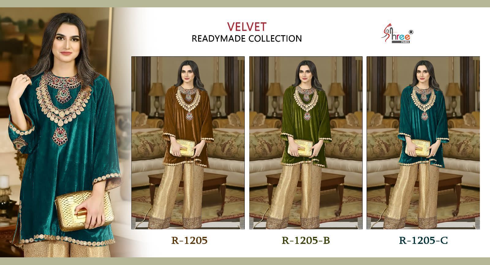 ( SHREE FABS R 1205 VELVET READYMADE KURTIS DISTRIBUTOR IN SURAT ) Buy in wholesale price