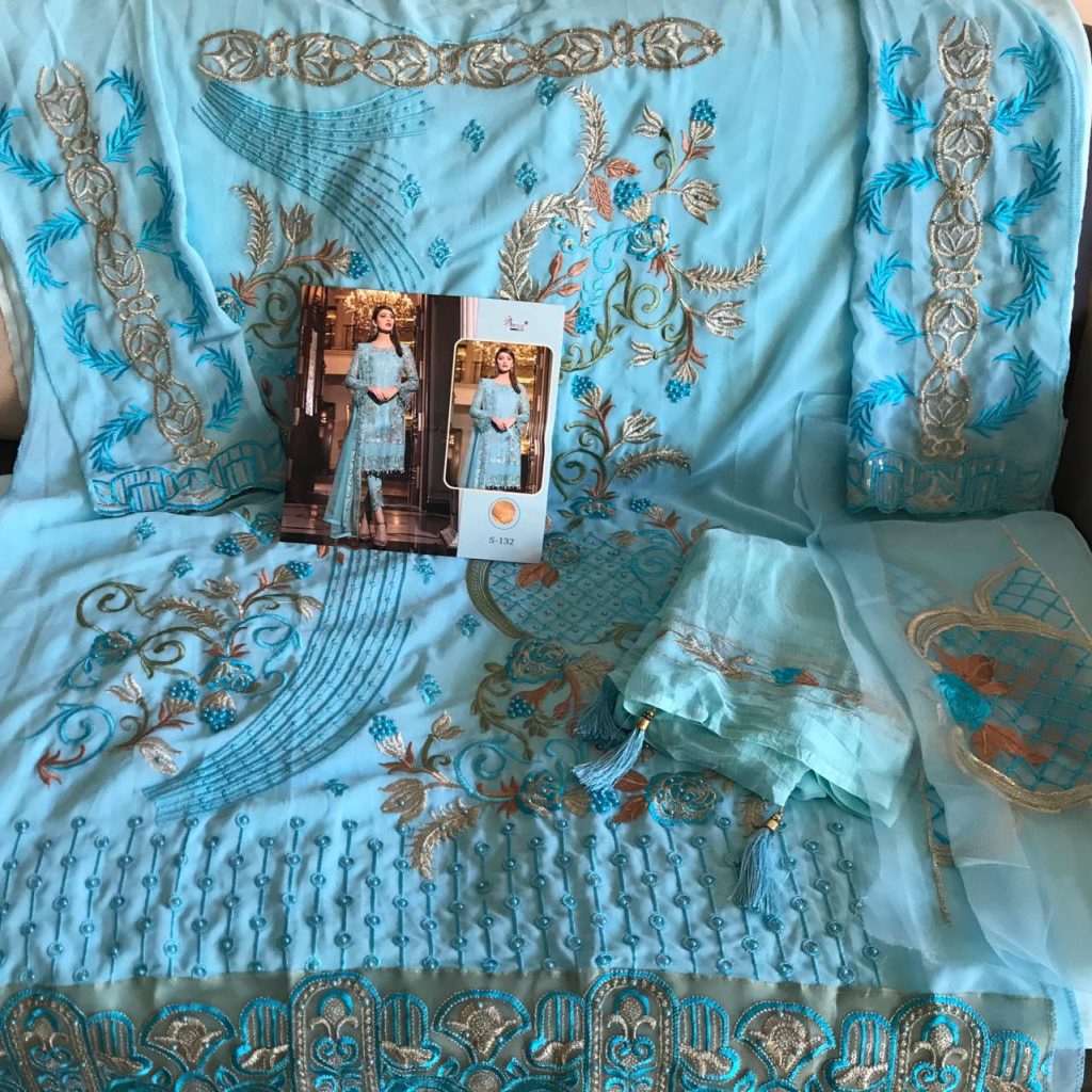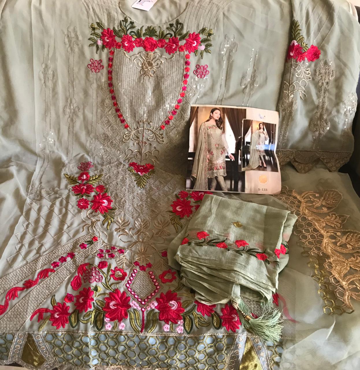 | DETAILS | TOP:- GEORGETTE WITH HEAVY EMBROIDERY INNER:- SANTOON BOTTOM:-SANTOON WITH PATCHES DUPATTA:- NAZNEEN WITH HEAVY EMBROIDERY |