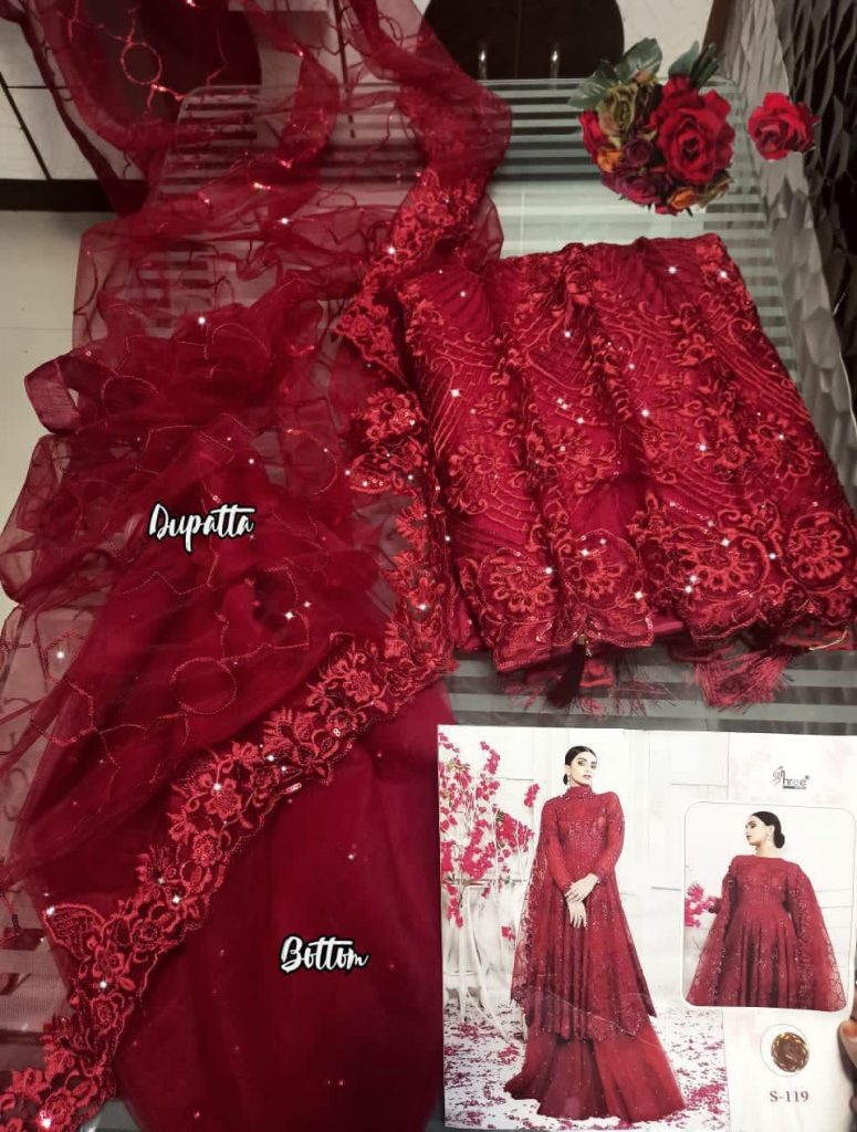 | DETAILS | Shree Fab Bottam:- Santoon/ Net with foil print lahnga style prints Dup – Heavy Butterfly Net with Hevy Embroidery Less *Net Rate – *1099 |