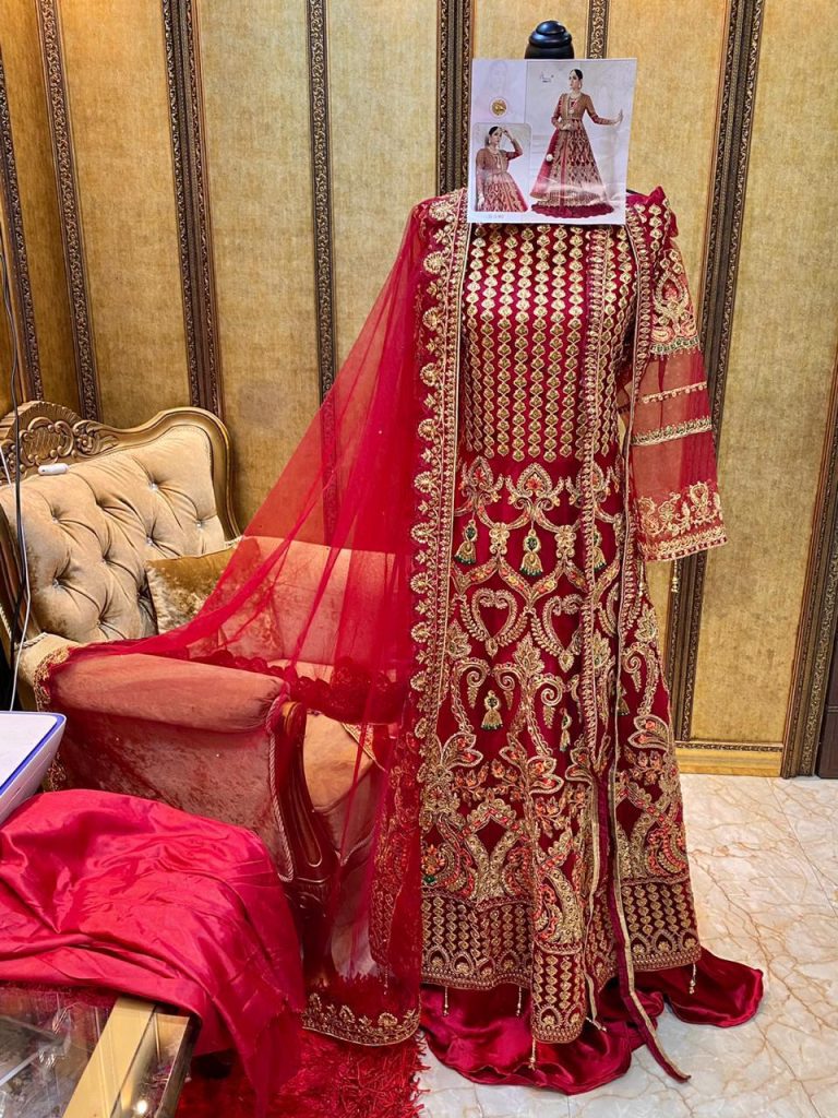 | DETAILS | *READY TO SHIP ?* *?MARIA.B (BRIDAL)* *_Anarkali Collection_* *Red Edition* ?Fully embroidered Heavy Net sequence work & Diamond + Pearls work (Handwork) *READY TO SHIP ?* |