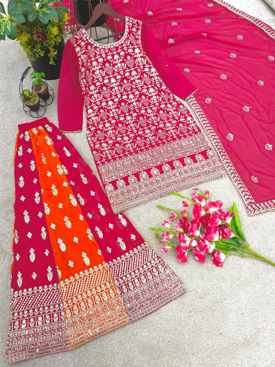 | FABRIC DETAILS | Top Fabric : Heavy Faux Georgette With Full Heavy Embroidery Sequence Work with Sleeve Top Inner :Heavy Micro Cotton Top Length : 40 Inches Top Size. : XL(42)FREE SIZE WITH ,XXL(44) MARJIN (Fully Stitched Complete Ready To Wear) Gharara Gharara Fabrics :Heavy Faux Georgette With Full Heavy Embroidery Sequence Work Gharara Length:40-41 Inch (fully stitched) Dupatta Dupatta Fabric :Heavy Faux Georgette With Full Heavy Embroidery Sequence Work With Lace Border |