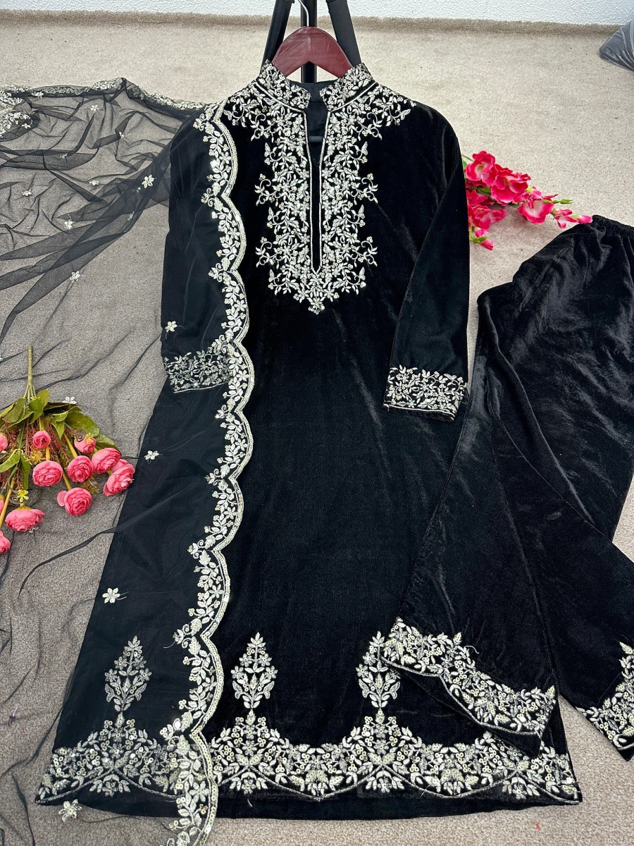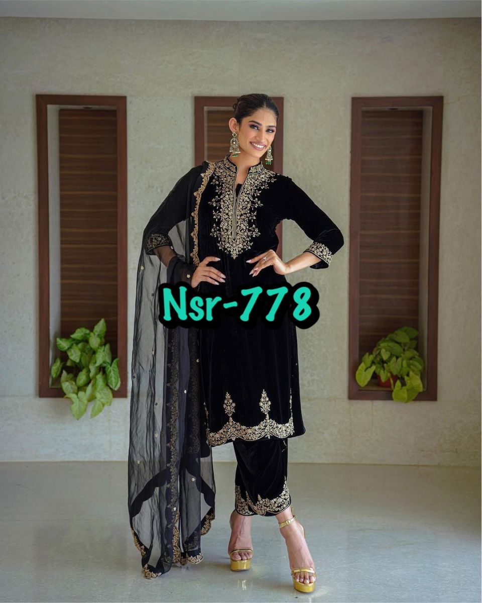 Bottom Fabric * : Heavy Viscose Velvet With *Embroidery Sequence Work