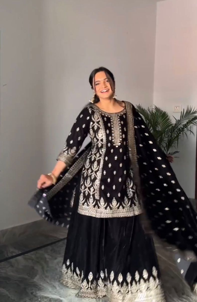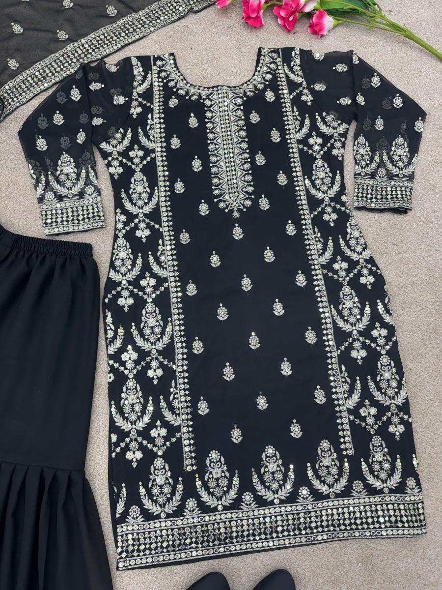 Top Fabric * :Heavy Faux Georgette With *Embroidery Sequence Work with Sleeve