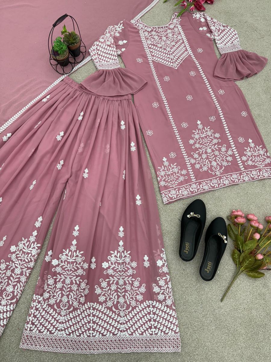 | FABRIC DETAILS | Top Top Fabric : Faux Georgette With Heavy Embroidery Thread Work (Full stitched)Top Inner :Heavy Micro Cotton Top Length :38-38 inch Top Size :M(38),L(40),XL(42), XXL(44) (Fully Stitched Completely Ready To Wear)Sharara Plazo Plazo Fabric : Faux Georgette With Embrodary Thread Work (Fullstitched)Dupatta *Dupatta Fabrics * Faux Georgette With Embroidery Work With Less Border (Dupatta Size 2.20 meter) |