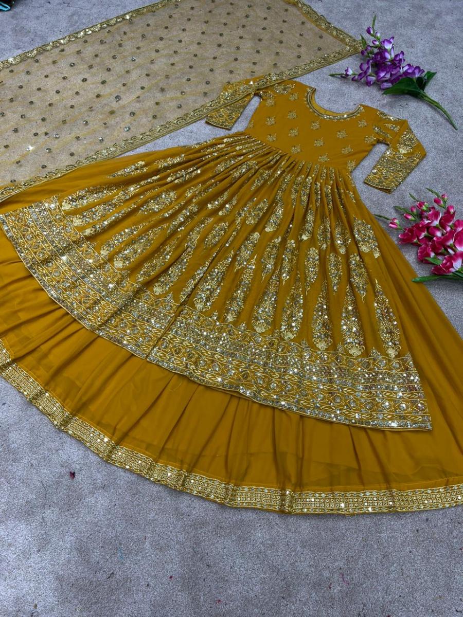 FABRIC DETAILS :- Top Fabric * :Faux Georgette With *Heavy Embroidery 5 mm Sequence Work With Embroidery Sleeve Top Flair :2.5 Meter Top Inner * : Micro Cotton Top Length * :52-53 Inches Top Size. : 42 xl free size (fullstitched )Lehenga fabric :Faux Georgette With * 5 mm Embroidery Sequence Lace Border (semistitched) Lehenga Inner : Micro Cotton Lehenga Flair :3 MeterDupatta Fabric * : Soft Butterfly Net With Embroidery Sequence Work And Embroidery Sequence Lace Border Dupatta Length *: 2.10 MeterWeight : 1.2 kgVIEW PRODUCTS