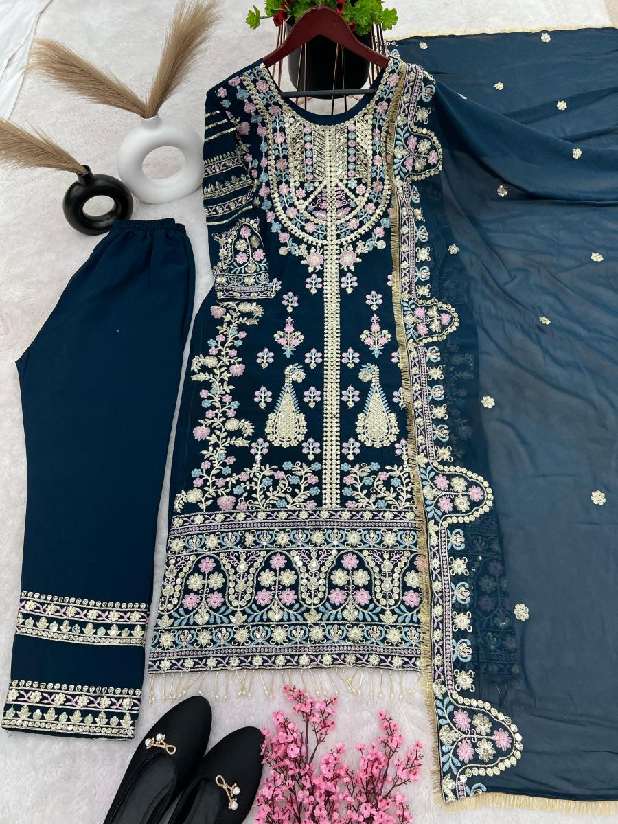 | FABRIC DETAILS | Top Top Fabric :Heavy Faux Georgette With Heavy Embroidery Sequence Work With Full SleeveTop Inner :Heavy Micro Cotton Top Length : 45-46 Inch Top Size. : M(38),L(40), Xl(42), Xxl(44) (FULLY STITCHED READY TO WEAR) Bottom Bottom Fabrics :Heavy Faux Georgette With Embroidery Sequence Work (Full stitched) Pent Length:40-41 Inch (fully stitched) Dupatta *Dupatta Fabric * :Heavy Faux Georgette With Embroidery Sequence Work And Lace Border |