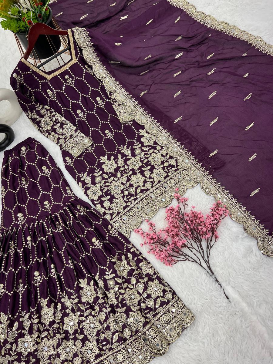 | FABRIC DETAILS | Top Top Fabric :Pure Heavy Chinnon Silk With Heavy Embroidery Sequence Work with Real Mirror Hand Work With Full SleeveTop Inner :Heavy Micro Cotton Top Length : 36-37 Inch Top Size. : M(38),L(40), Xl(42), Xxl(44) (FULLY STITCHED READY TO WEAR) Sharara Sharara Fabrics :Pure Heavy Chinnon Silk With Embrodary Siquance Work With Real Mirror Hand Work (Full stitched) Pent Length:40-41 Inch (fully stitched) Dupatta *Dupatta Fabric * :Pure Heavy Chinnon Silk With Embroidery Sequence Work With Real Mirror Hand Work And Four Side Lace Border |