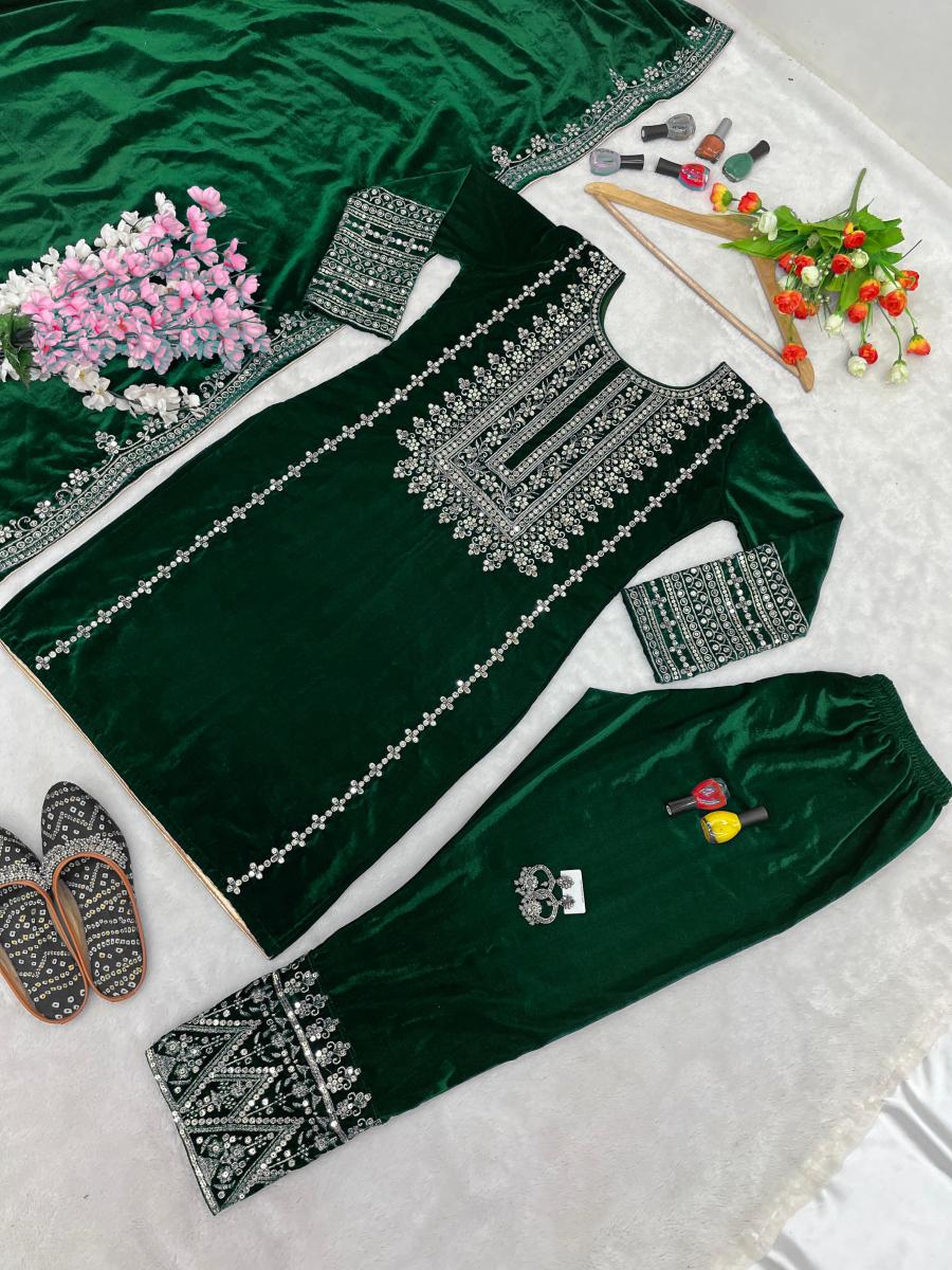 | FABRIC DETAILS | Top Fabric :Heavy Viscose Velvet With Heavy Embroidery Sequence Work With Full SleevesTop Inner : Micro Cotton Top Size :* M(38),L(40),XL(42),XXL(44) (Fully Stitched) Top Length * : 39-40 InchesBottom Fabric * : Viscose Velvet with Embroidery Sequence Work ( *Full Stiched *)Dupatta Fabric : Viscose Velvet with Embroidery Sequence Work lace border |