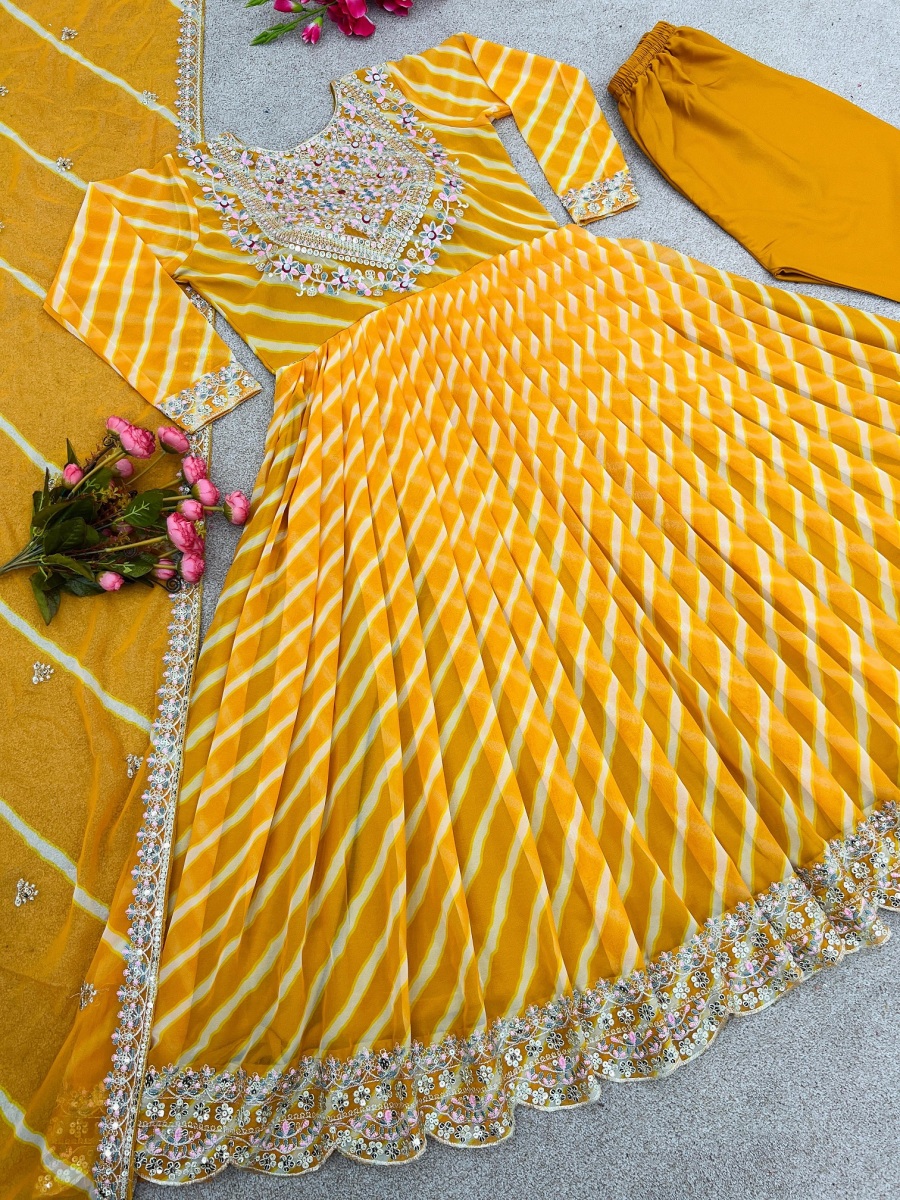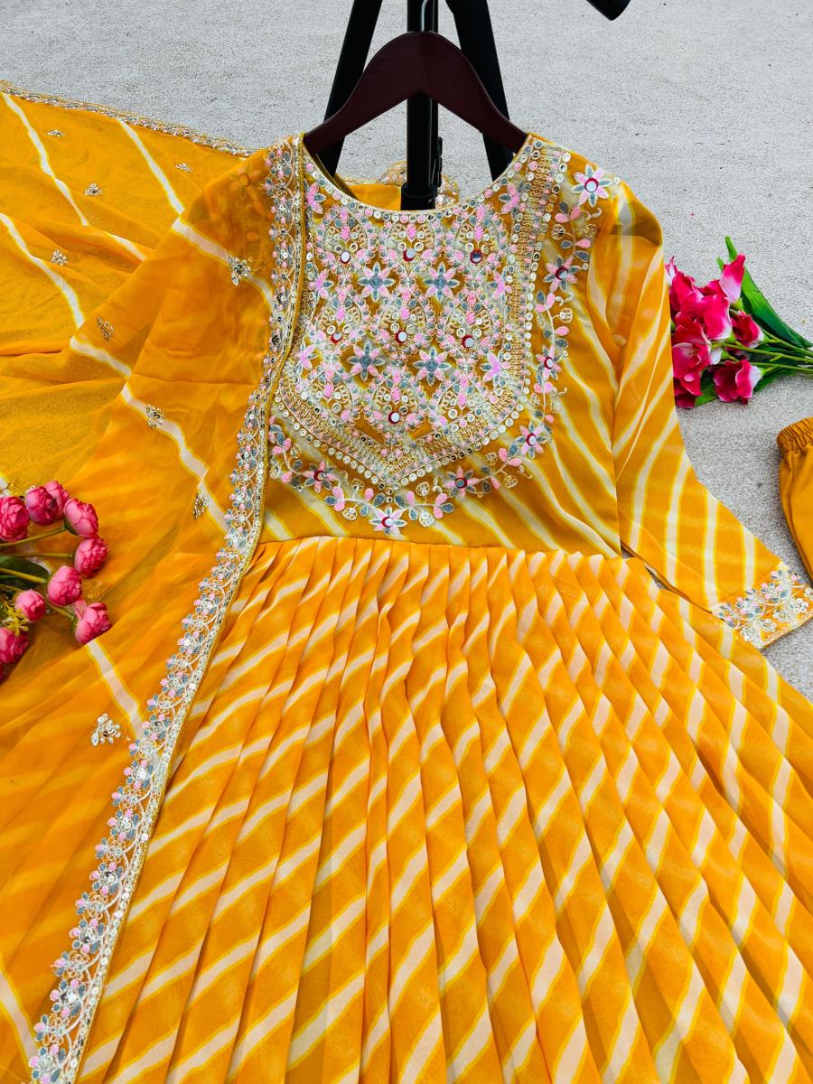 FABRIC DETAILS :- Gown Fabric * :Faux Georgette With *Embroidery Work And Digital Print Work With Full Sleeve Gown Inner : Micro Cotton