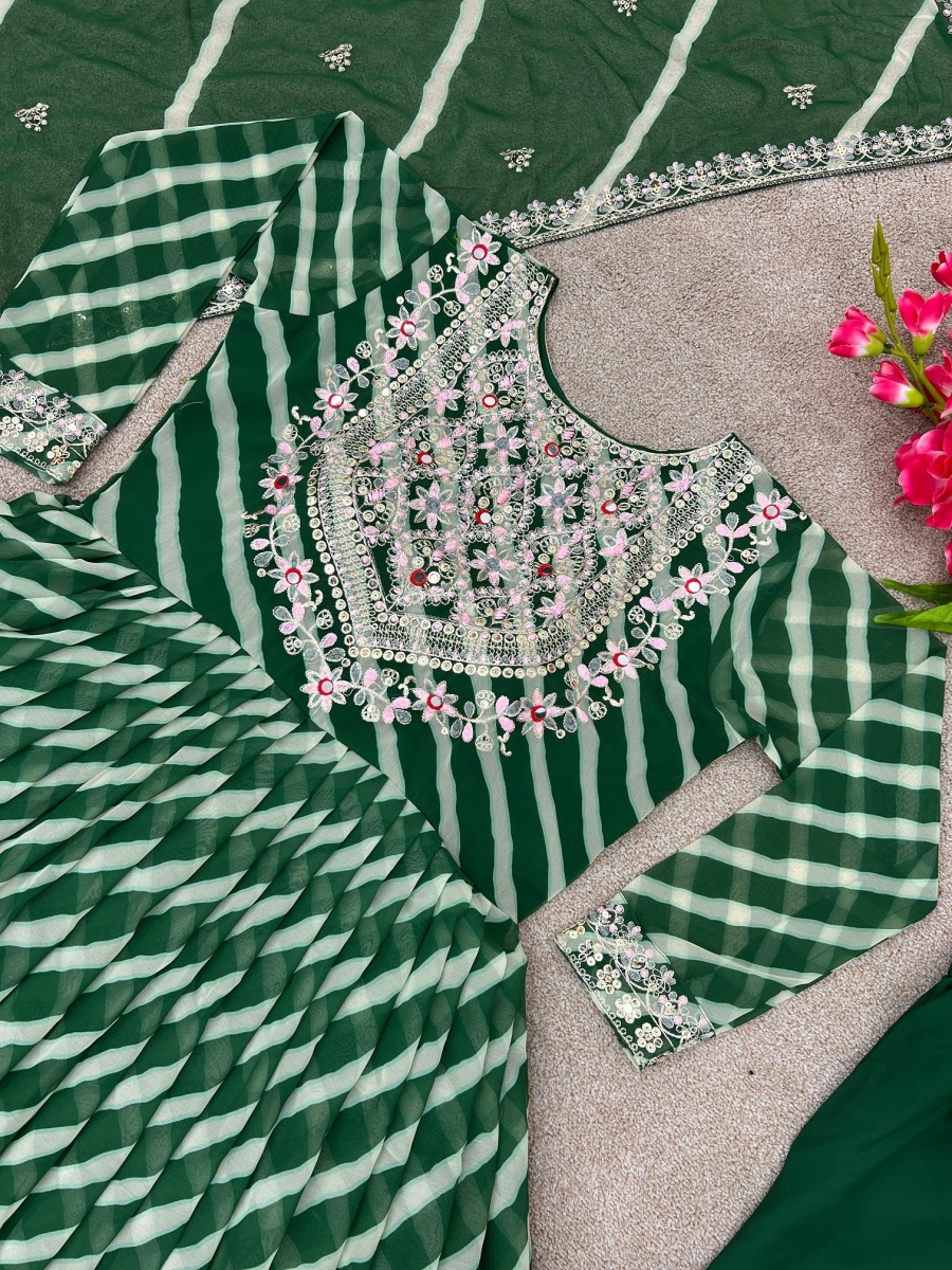 FABRIC DETAILS :- Gown Fabric * :Faux Georgette With *Embroidery Work And Digital Print Work With Full Sleeve Gown Inner : Micro Cotton