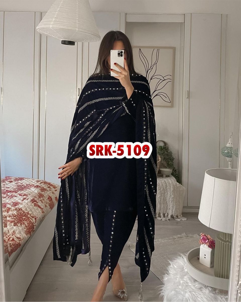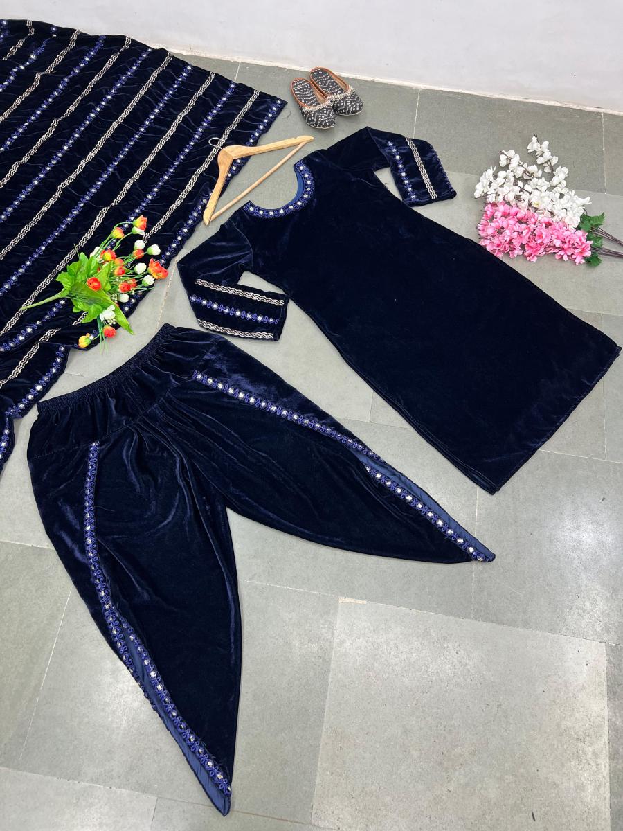 | FABRIC DETAILS | *Top Fabric * :Viscose Velvet With Embroidery Sequence Work with Full SleeveToo Inner : Micro Cotton Too Size :Free Size Xl(42) With Xxl(44) Margin(FULLY STITCHED COMPLETELY READY TO WEAR)Top Length : 38-39 InchesDhoti Salwar Fabric : Viscose Velvet With Embroidery Sequence Work (Full Stiched Dhoti Styles )*Dupatta Fabric * :Viscose Velvet With Embroidery Sequence Work Dupatta Length: 2.10mtr |