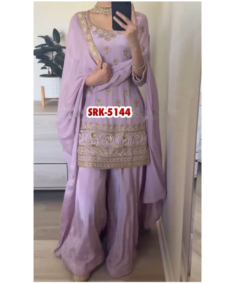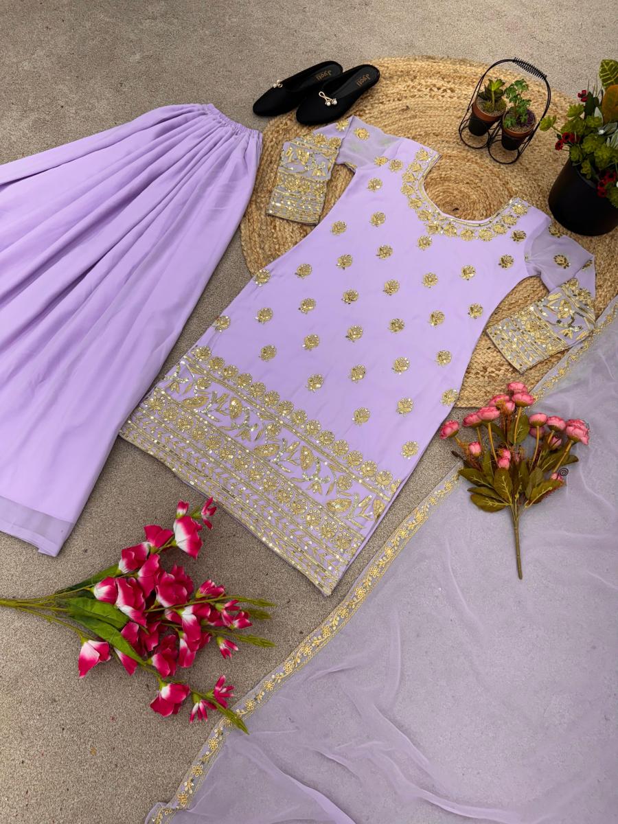 | FABRIC DETAILS | Top Top Fabric :Heavy Faux Georgette With 5mm Embroidery Sequence Work With Full SleeveTop Inner :Heavy Micro Cotton Top Length :37-38 Inch Top Size. : M(38),L(40),XL(42),XXL(44) (FULLY STITCHED READY TO WEAR) Sharara Plazzo Plazzo Fabrics :Heavy Faux Georgette With Fully Flair Plazzo inner :Heavy Micro Cotton Plazzo Length:40-41 Inch (fully stitched) Dupatta Dupatta Fabric :Heavy Faux Georgette With Embroidery Sequence Work Lace Border Dupatta Length: 2.10MTR |