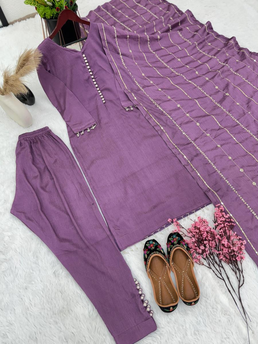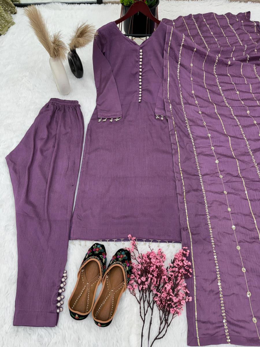 | FABRIC DETAILS | Top Top Fabric:-Pure Chinnon Silk With Fancy Latkan With Full Sleeve Top Inner :Heavy Micro Cotton Top Length:-45-46Inch Top Size:- M(38),L(40),XL(42),XXL(44) (FULLY STITCHED READY TO WEAR) Bottom Bottom Fabrics :Pure Chinnon Silk With Elastic Bottom Inner :Heavy Micro Cotton (Free Size Up To Xxl(44) (Full stitched) Bottom Length:40-41 Inch Dupatta Dupatta Fabric :Pure Chinnon Silk With Embroidery Sequence Work With Peals Work |