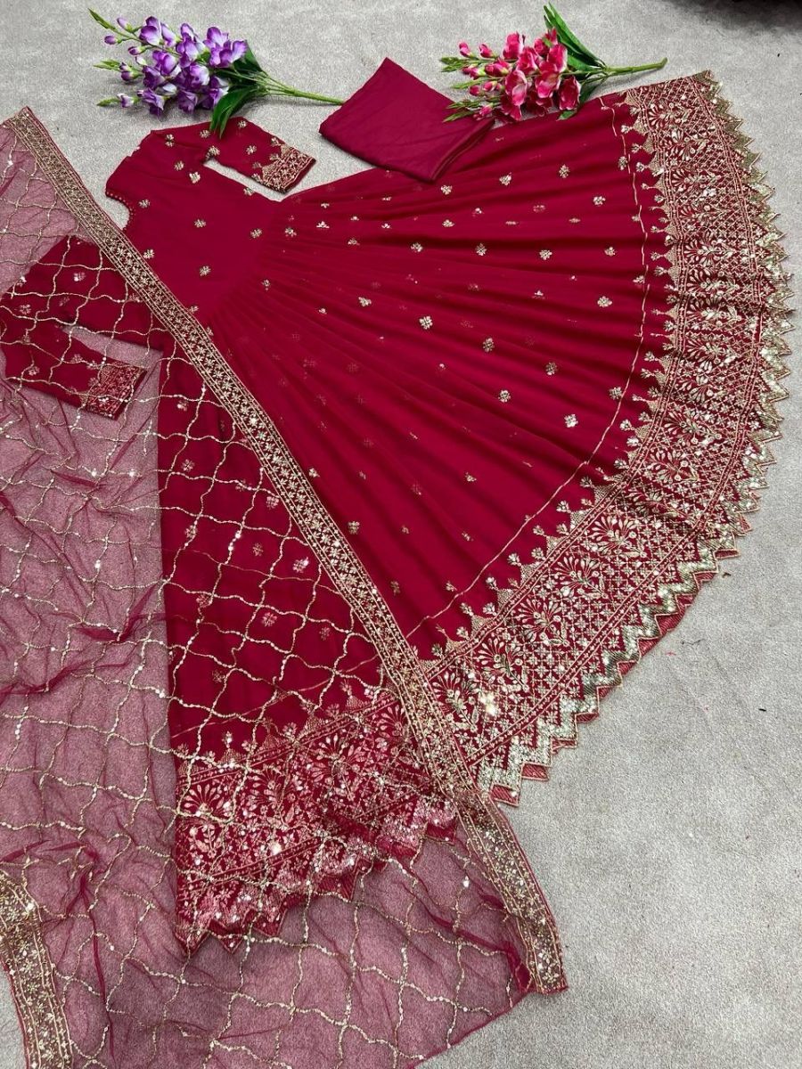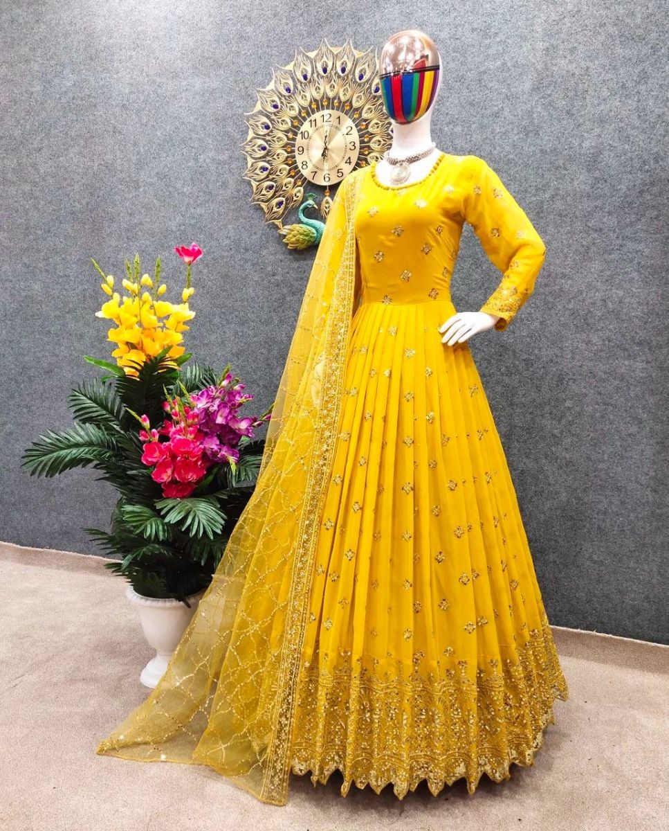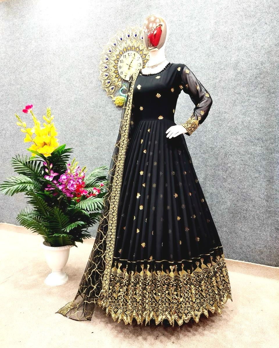 FABRIC DETAILS :- Gown Fabric :Faux Georgette With Embroidery Sequence Work With Full SleeveGown Inner : Micro Cotton Gown Size : Up To 42 XL Free Size (Fully Stitched) Gown Length : 55-56 Inches Gown Flair : 3 MeterBottom Fabric * : Micro Cotton ( *Unstich)Dupatta Fabric : Heavy Net With Embroidery Sequence work with Embroidery Sequence Lace BorderWHATSAPP BROADCAST LIST SEND YOUR NAME AND CITY ON+91-8799402355