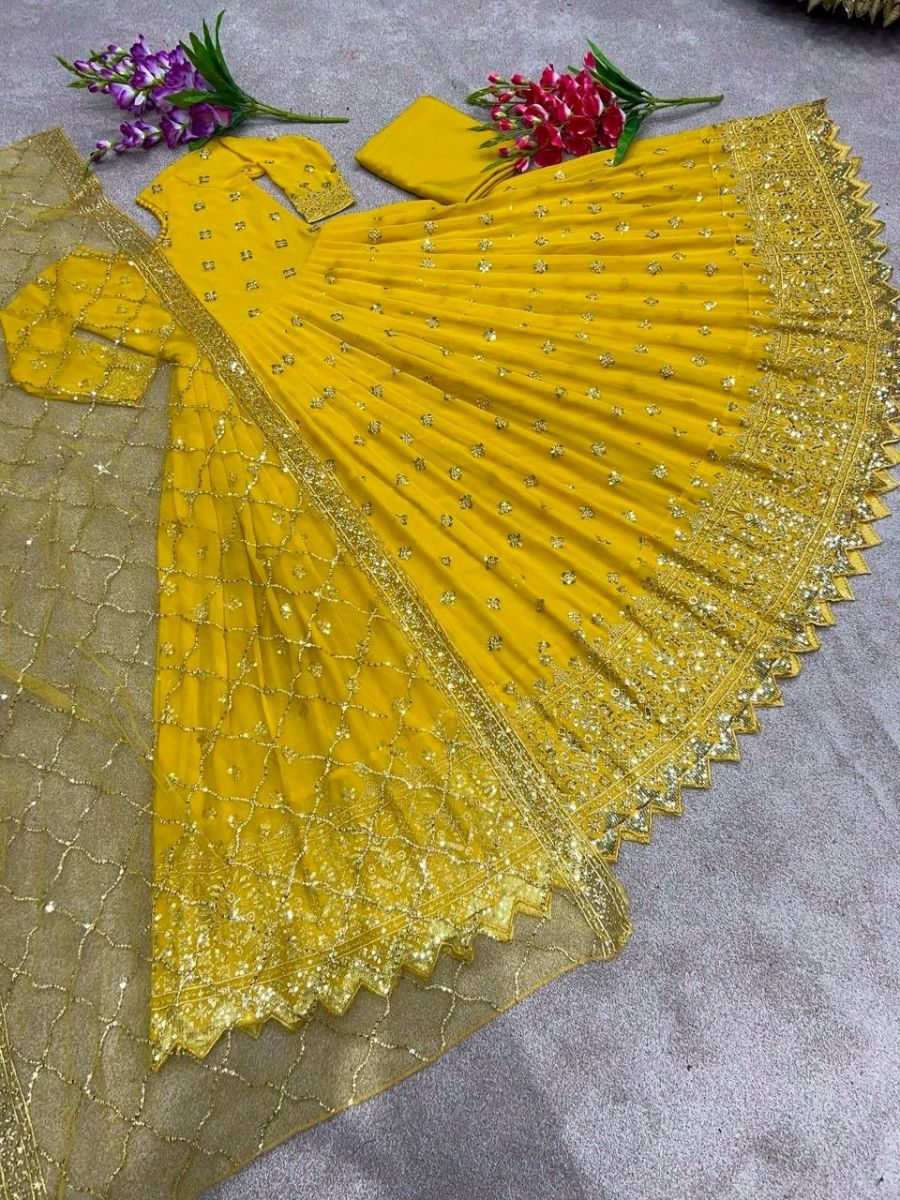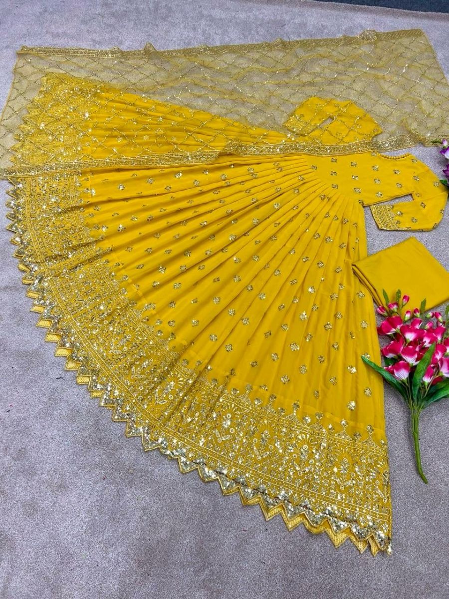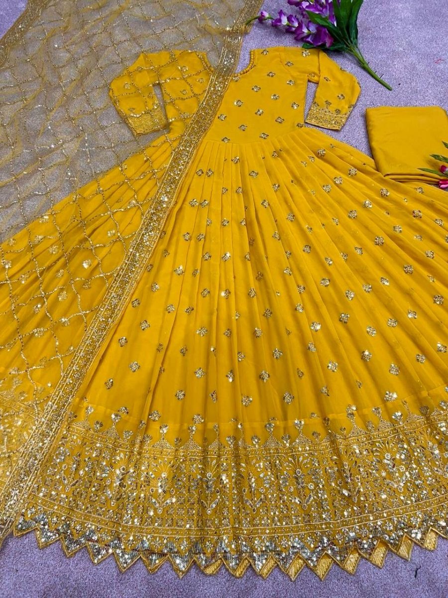 FABRIC DETAILS :- Gown Fabric :Faux Georgette With Embroidery Sequence Work With Full SleeveGown Inner : Micro Cotton Gown Size : Up To 42 XL Free Size (Fully Stitched) Gown Length : 55-56 Inches Gown Flair : 3 MeterBottom Fabric * : Micro Cotton ( *Unstich)Dupatta Fabric : Heavy Net With Embroidery Sequence work with Embroidery Sequence Lace BorderWHATSAPP BROADCAST LIST SEND YOUR NAME AND CITY ON+91-8799402355