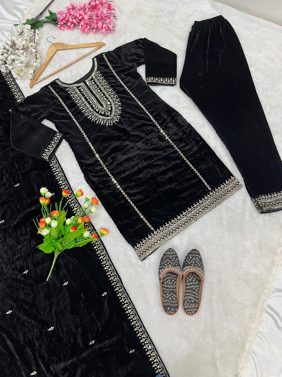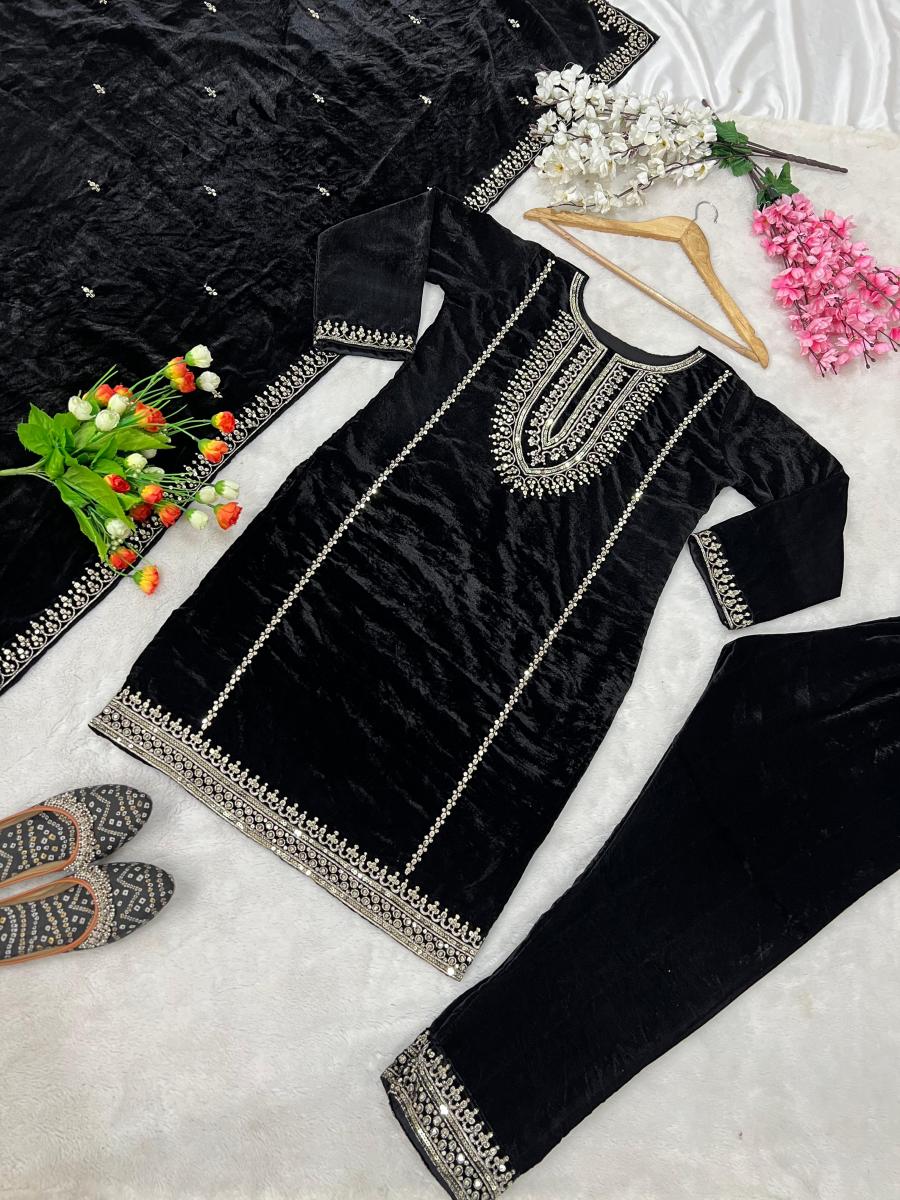 FABRIC DETAILS :- Top Top Fabric : Heavy Viscose Velvet With *Heavy Embroidery Sequence Work with Full Sleeves (Full stitched) Top Inner :Heavy Micro Cotton Top Length : 38 Inch Top Size : XL(42) With XXL(44) Margin (Fully Stitched Completely Ready To Wear)Sharara Fabric Bottom Fabric * : Heavy Viscose Velvet With *Heavy Embroidery Sequence Work (Fullstitched)Dupatta Dupatta Fabrics Heavy Viscose Velvet With Heavy 5mm Embroidery WorkSHREE HARI ZSR 3046 DESIGNER VELVET SUITS