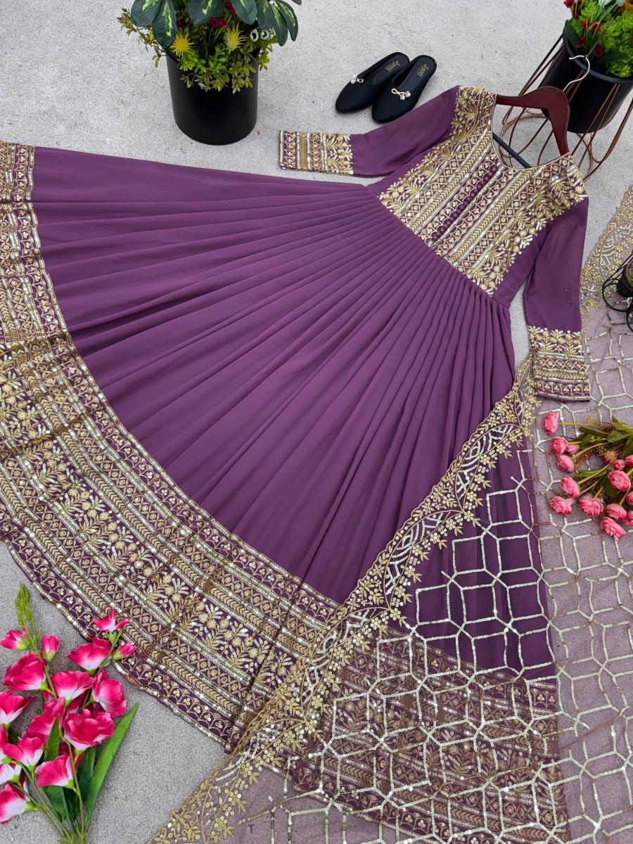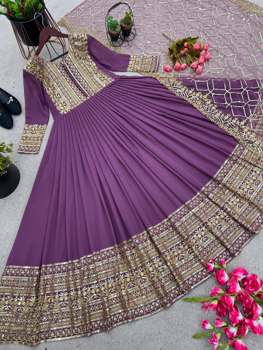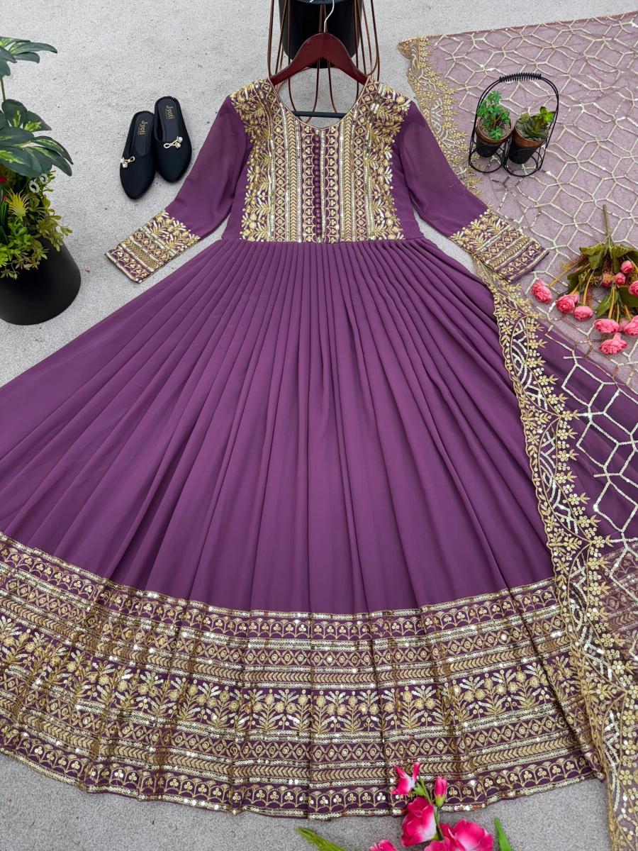 | FABRIC DETAILS | Gown Fabric * :Faux Georgette With *Embroidery Sequence Work With Sleeve (Fullstitched ) Gown Inner : Micro Cotton Gown Size : Up To 42 Xl Free Size (Fully Stiched ) Gown Length :50-51 Inches Gown Flair : 3 Meter Bottom Fabric : NoDupatta Fabric :Heavy Net With Heavy Embroidery Sequence WorkDupatta Length : 2.10 mtrWeight : 1 kg |