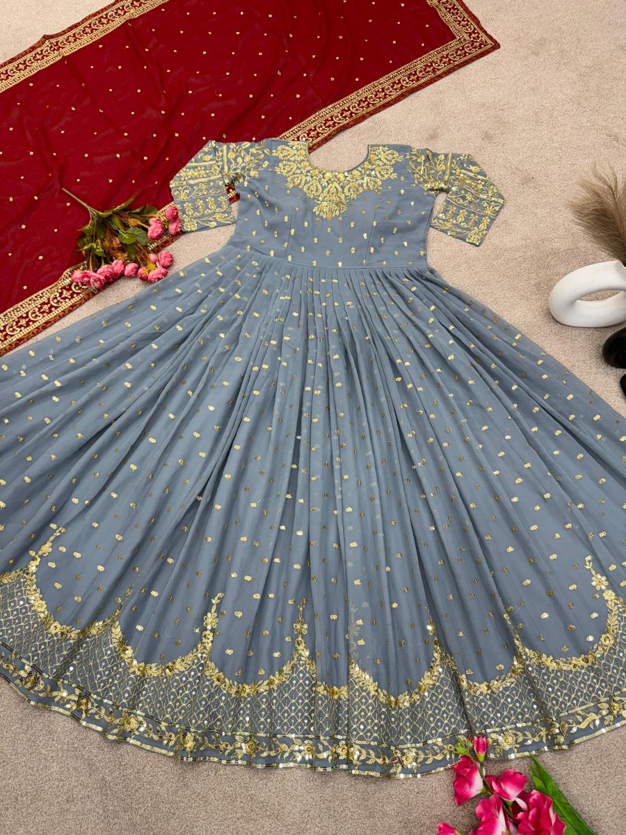 Gown Fabric * :Faux Georgette With *Embroidery Sequence Work With Sleeve