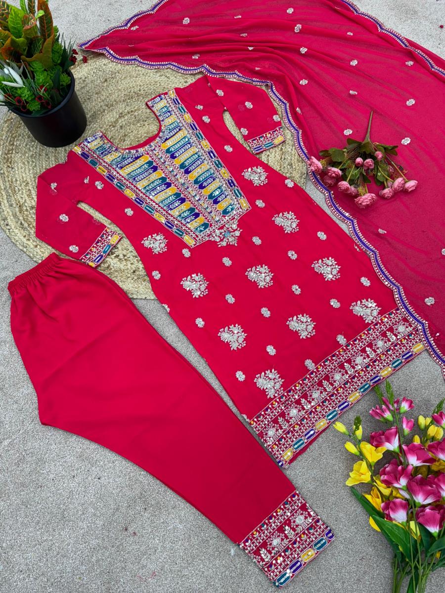 | FABRIC DETAILS | Top Top Fabric * :Heavy Faux Georgette With *Heavy Malty Thread Embroidery Sequence Work With and Sleeve Top Inner :Heavy Micro Cotton Top Length : 43-44 Inch Top Size. : 2 Size Available XL(42) and XXL(44) (Fully Stitched Ready To Wear) Pent Style Pent Fabrics :Heavy Faux Georgette With Malty Thread Embroidery Sequence Work Pent Length:40-41 Inch (fully stitched) Dupatta Dupatta Fabric * :Heavy Faux Georgette With *Embroidery Sequence Work |