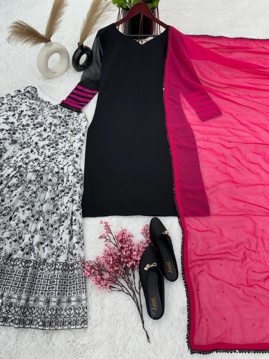 | FABRIC DETAILS | Top Top Fabric * :Heavy Faux Georgette With *Sleeve and Heavy Lace Work Top Inner :Heavy Micro Cotton Top Length : 38 Top Size. : XL(42) With XXL(44) Margin (Fully Stitched Complete Ready To Wear) Gharara Gharara Fabrics : Heavy Faux Georgette With Full Heavy Embroidery Sequence Work Gharara Length:40-41 Inch (fully stitched)Dupatta Dupatta Fabric * :Heavy Faux Georgette With * Embroidery Sequence Work With Lace Border |