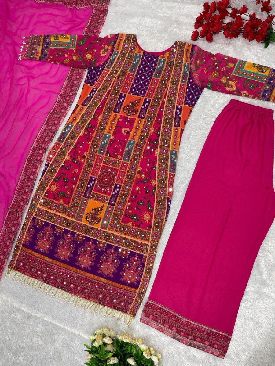 | FABRIC DETAILS | #TOP FABRICS : HEAVY FUAX GEORGETTE WITH KODI LESS #TOP SIZE : FULL STITCHED . M(38) XL(42)#TOP LENGTH : 47 INCHED #TOP INNER : MICRO COTTON #TOP WORK : DIGITAL PRINT WITH REAL MIRROR HAND WORK AND VAL LESS#PLAZZO FABRICS :SOFT BUTTER SILK #PLAZZO LENGTH : 39 INCHED #PLAZZO SIZE : FULL STITCHED ( FREE SIZE ) #PLAZZO WORK :DIGITAL PRINT LESS BODAR#DUPATTA : FUAX GEORGETTE #DUPATTA WORK : DIGITAL PRINT LESS BODER #DUPATTA SIZE : 2.10-2.20 MTR |