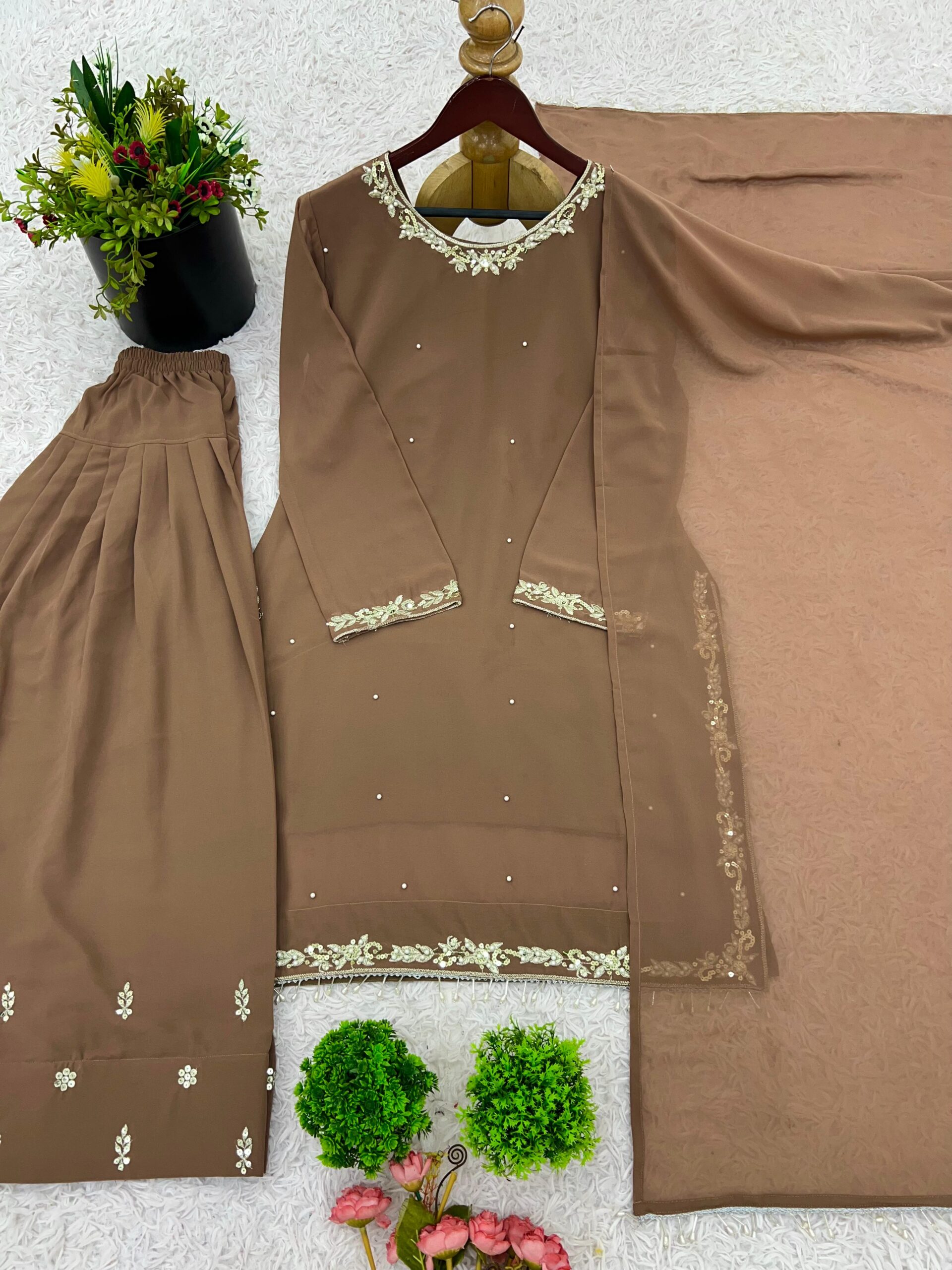 Top Fabric :Faux Georgette With Embroidery Work with Full Sleeve and Beads Work