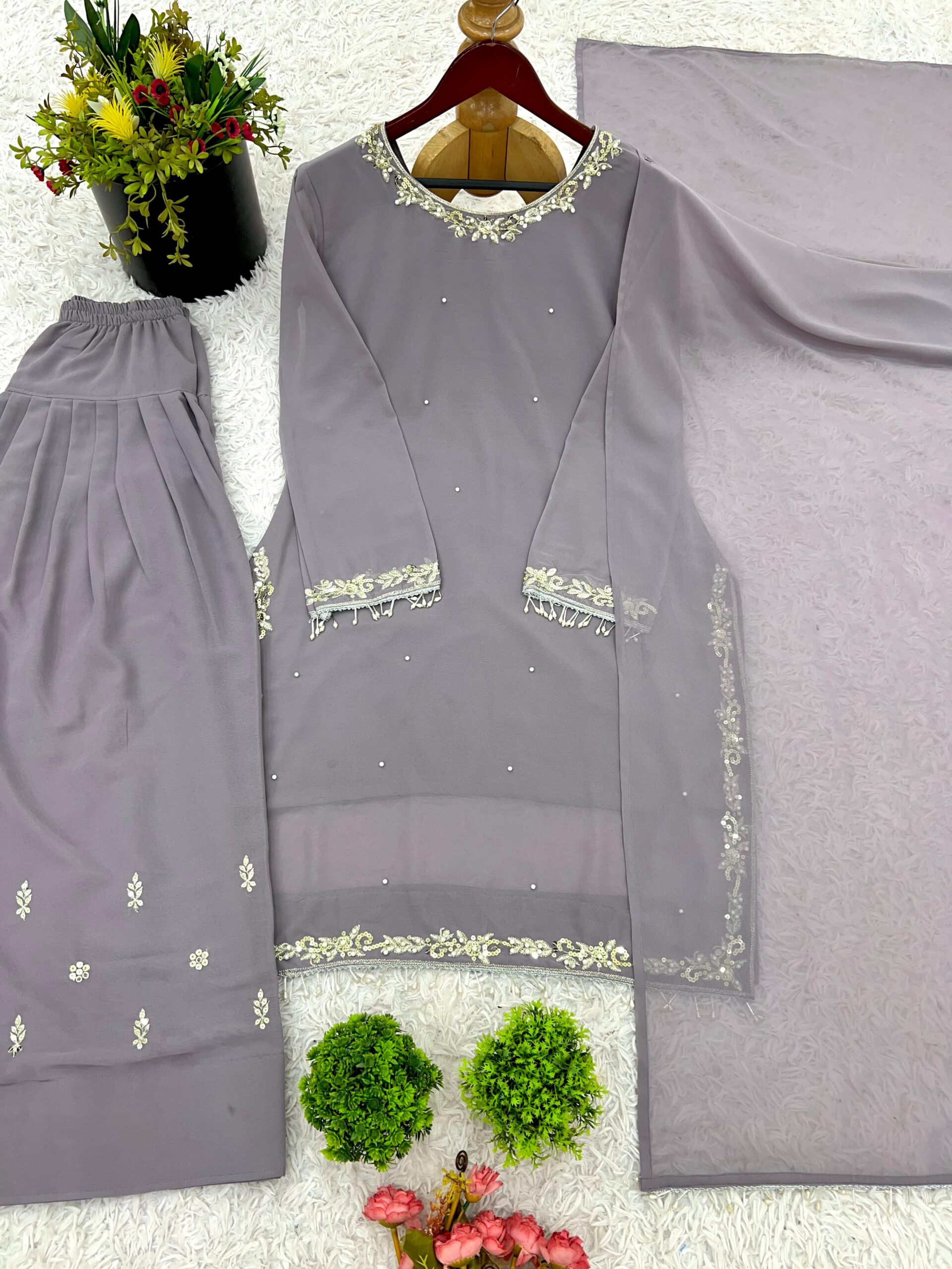 Pent Fabrics :Faux Georgette With Embroidery Sequence work with Elastic