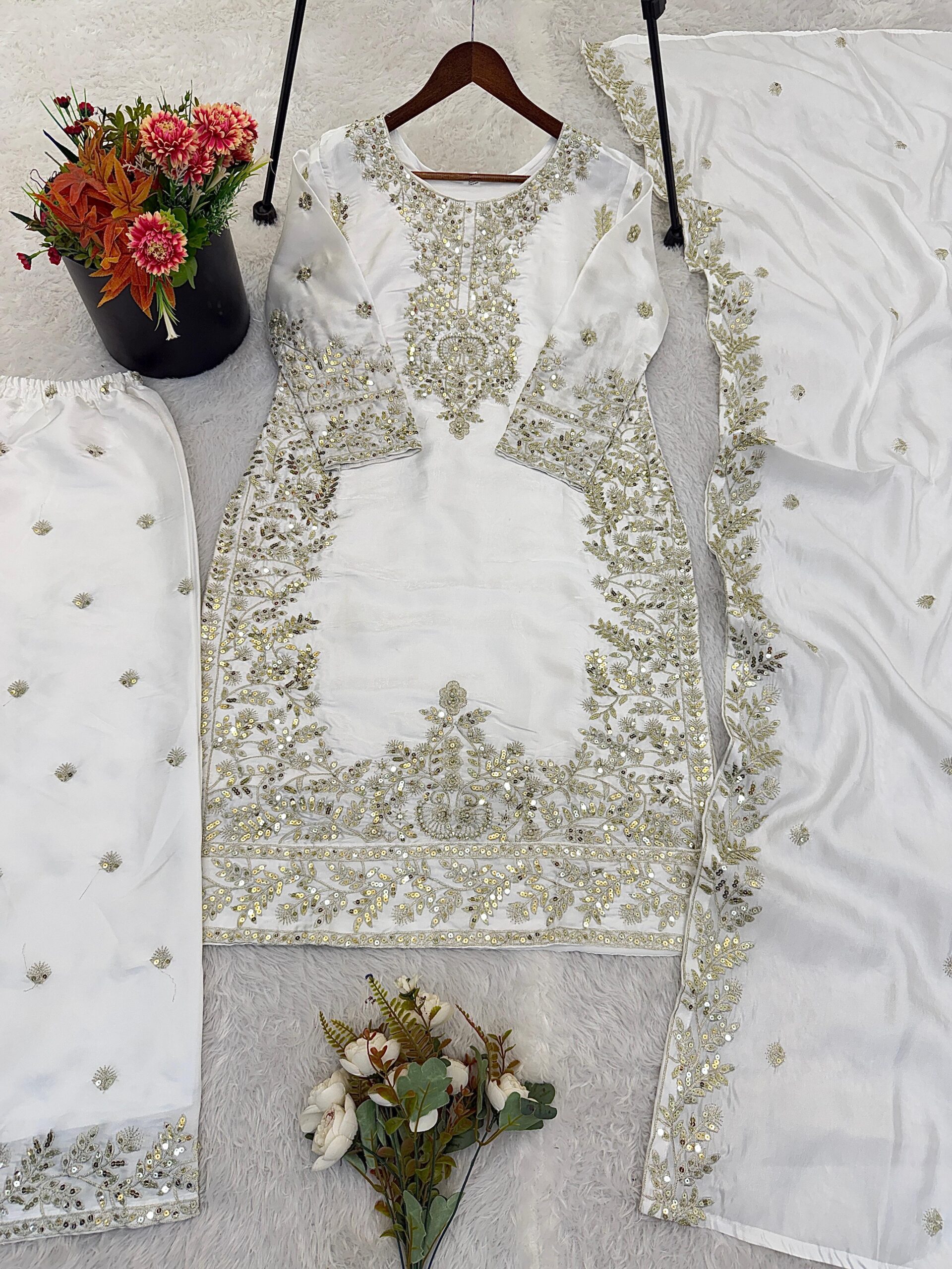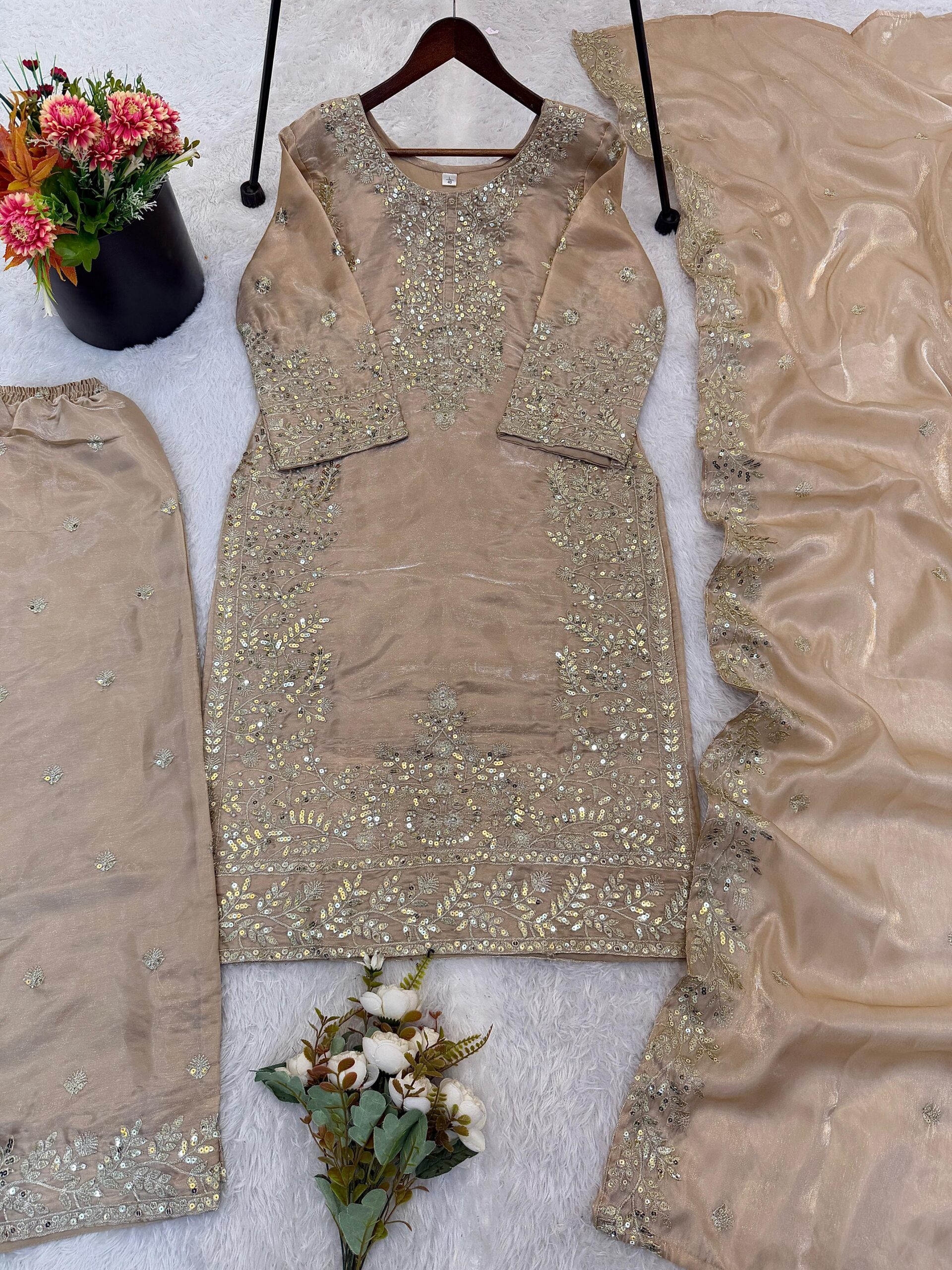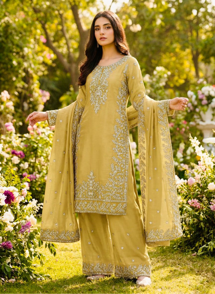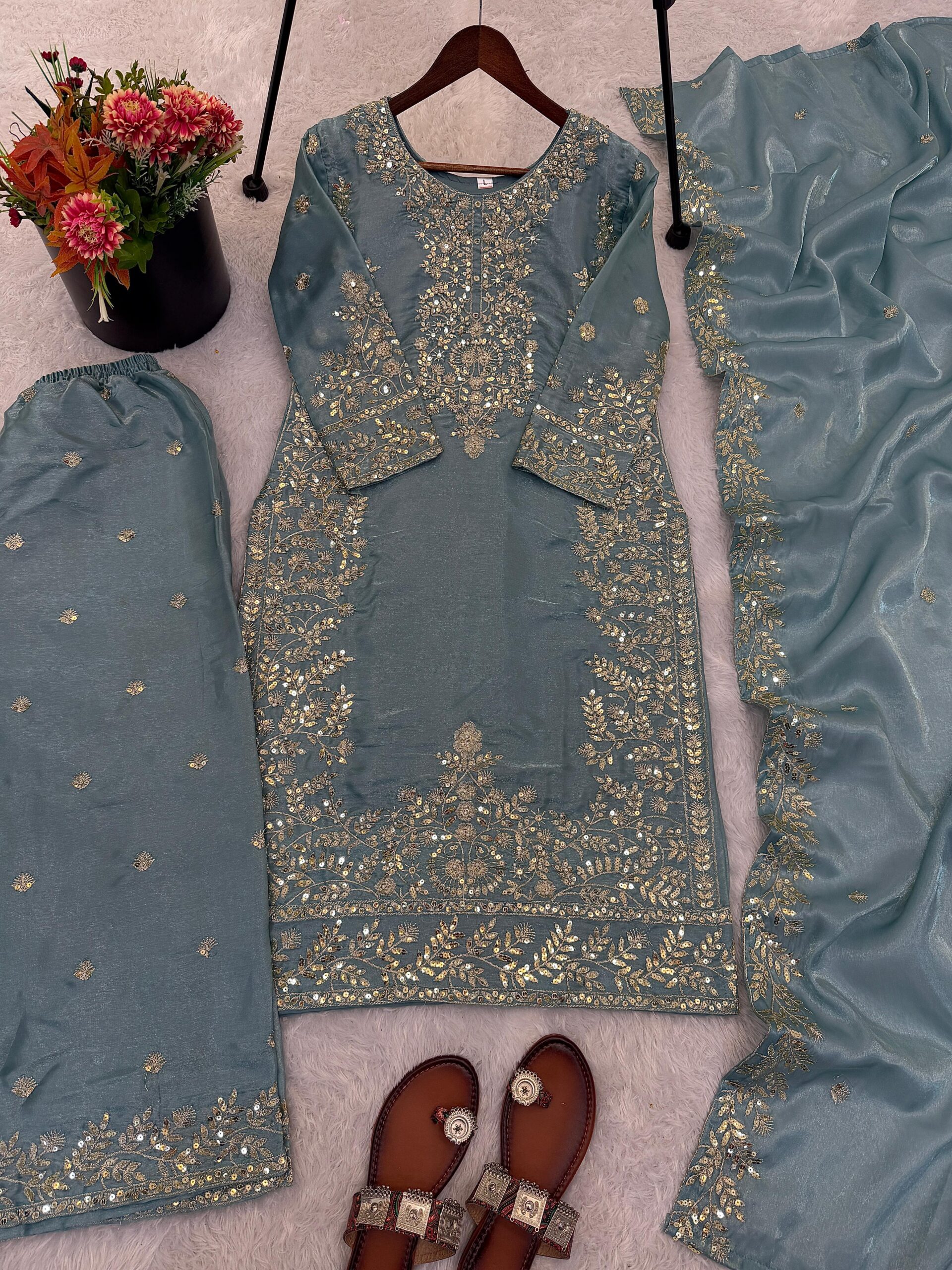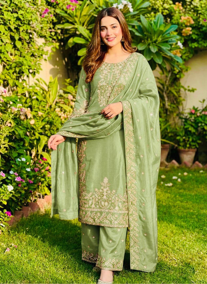 Top Fabric :Pure GMY SILK With Heavy Embroidery Sequence Work With Full Sleeve