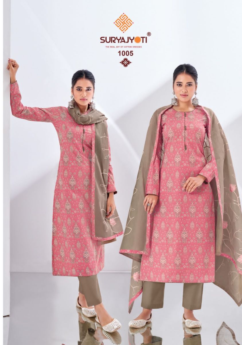 SURYAJYOTI NISHA VOL 1 CAMBRIC COTTON KHADI PRINT SUITS WHOLESALER SURAT