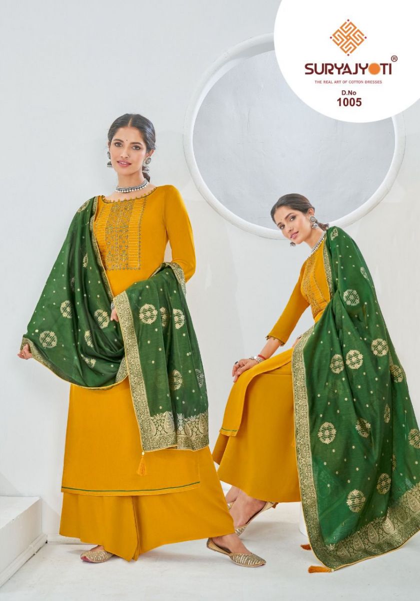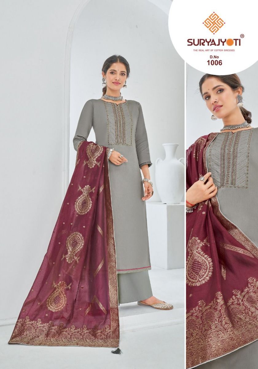 | DETAILS | *FABRICS* Fabric JAAM SATIN WITH NECK EMBRODIERY & SWAROVSKI DIAMOND WORK* Top JAAM SATIN WITH NECK EMBRODIERY & SWAROVSKI DIAMOND WORK*|2.50Mtrs Bottom COTTON SOLID*| 2.50 Mtrs |
