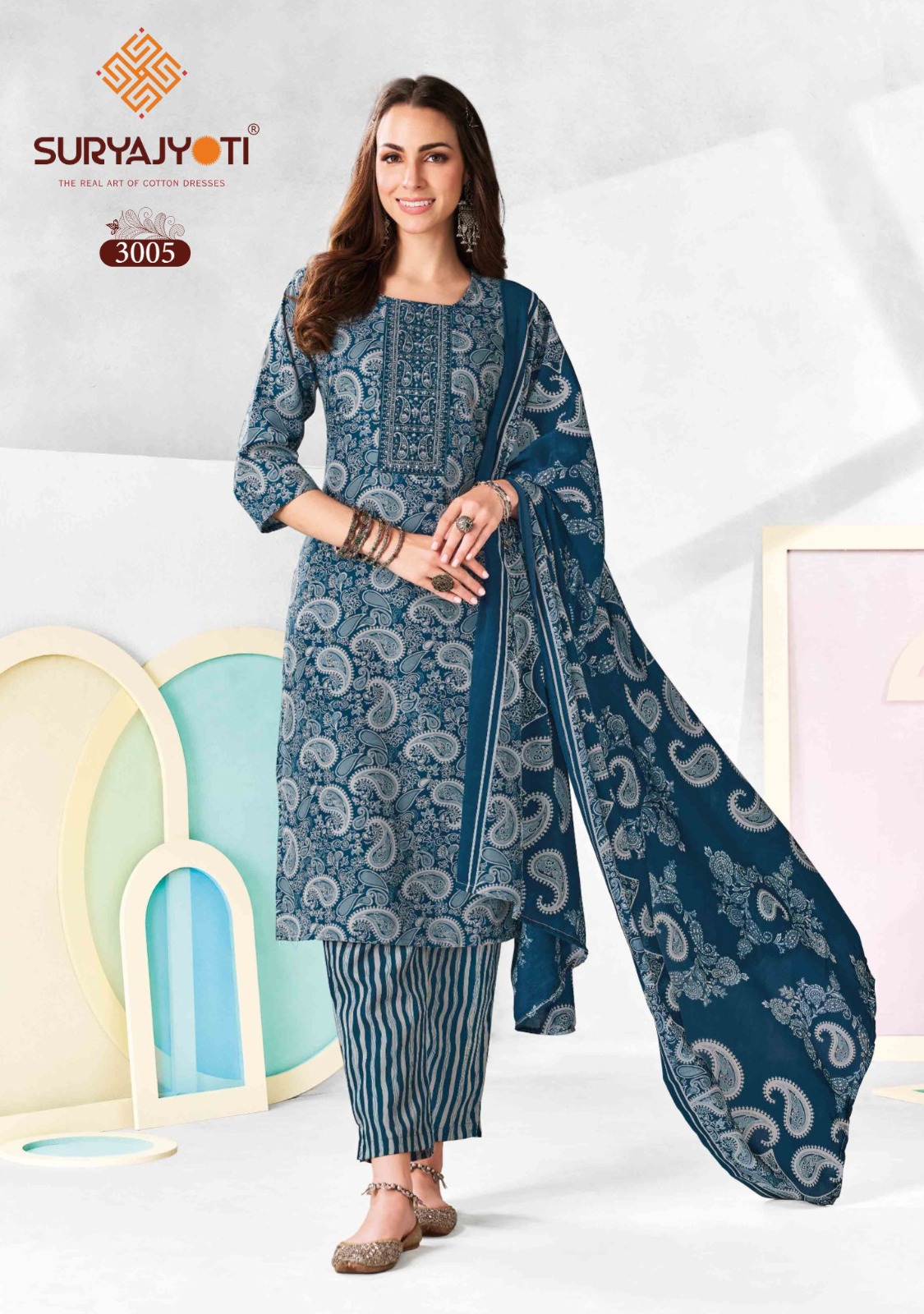 | DETAILS | **FABRIC DETAILS:- Top – Pure Malaysian Cotton Printed With Neck Embroidery Work | Bottom – Pure Malaysian Cotton Printed | Dupatta – Pure Cotton Printed | 2.25 Mtrs Size – L(40) / XL(42) / 2XL(44) |