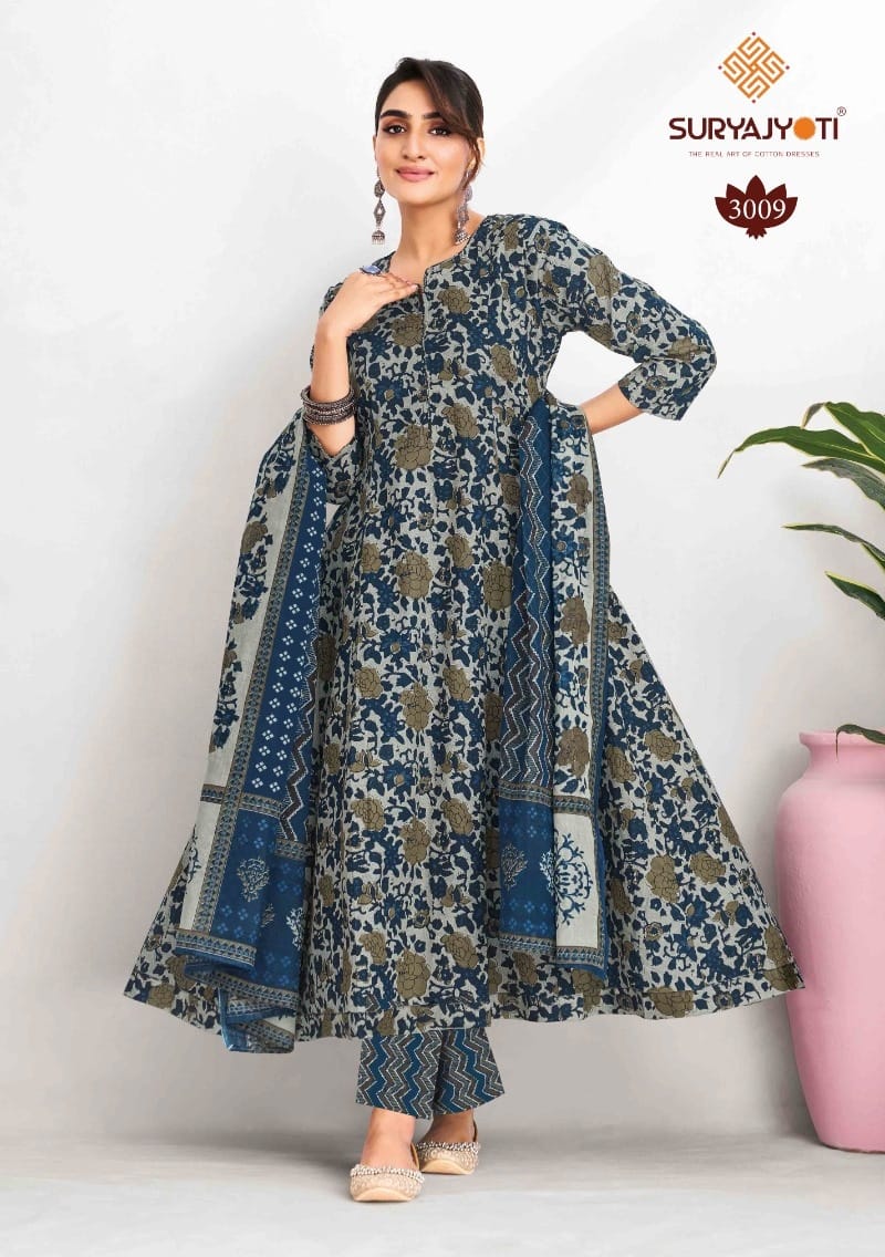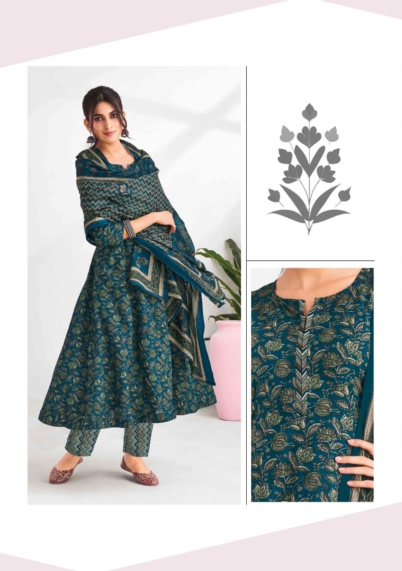 | DETAILS | **FABRIC DETAILS:- Top – Heavy Cotton Printed Anarkali Style With 3/4 Sleeves Bottom – Heavy Cotton Printed Pants | Dupatta – Heavy Cotton Printed Dupatta | Cut:- 2.25 Mtrs Sizes – M(38) / L(40) / XL(42) / 2XL(44) / 3XL(46) |