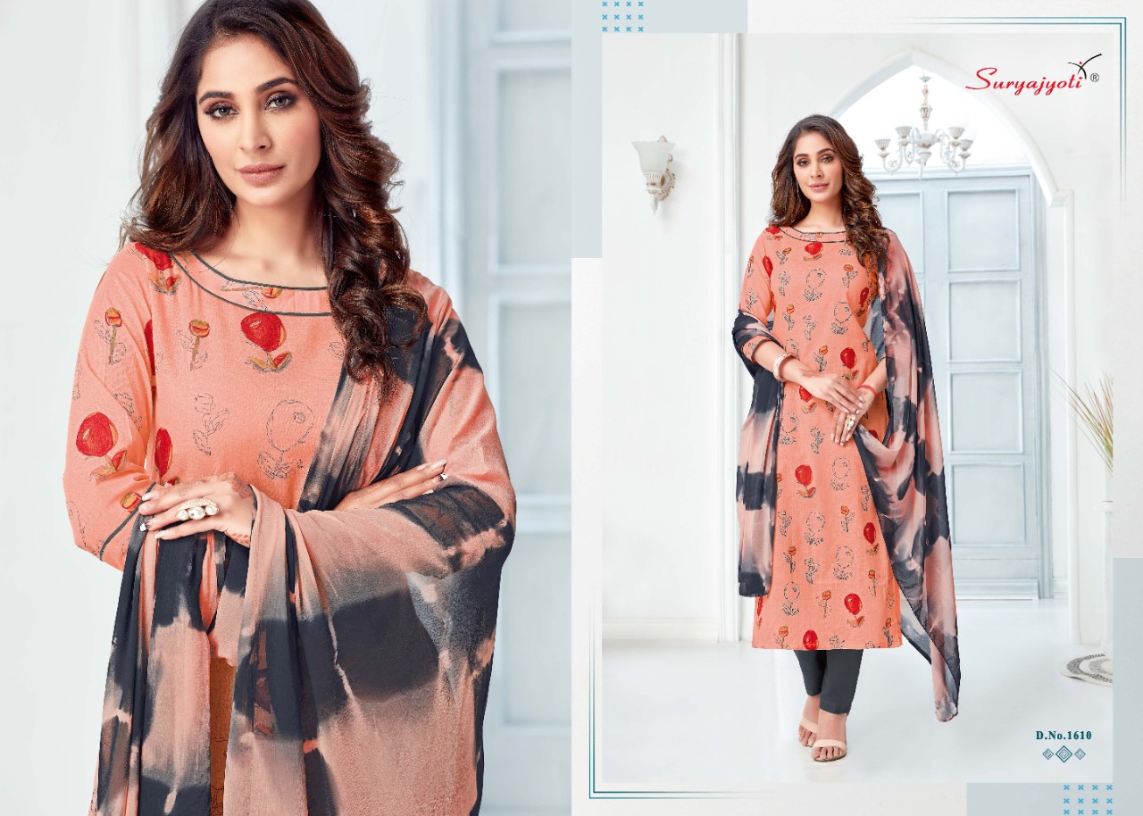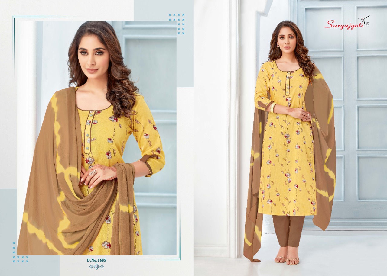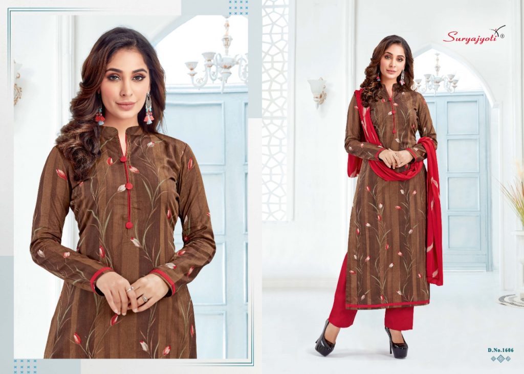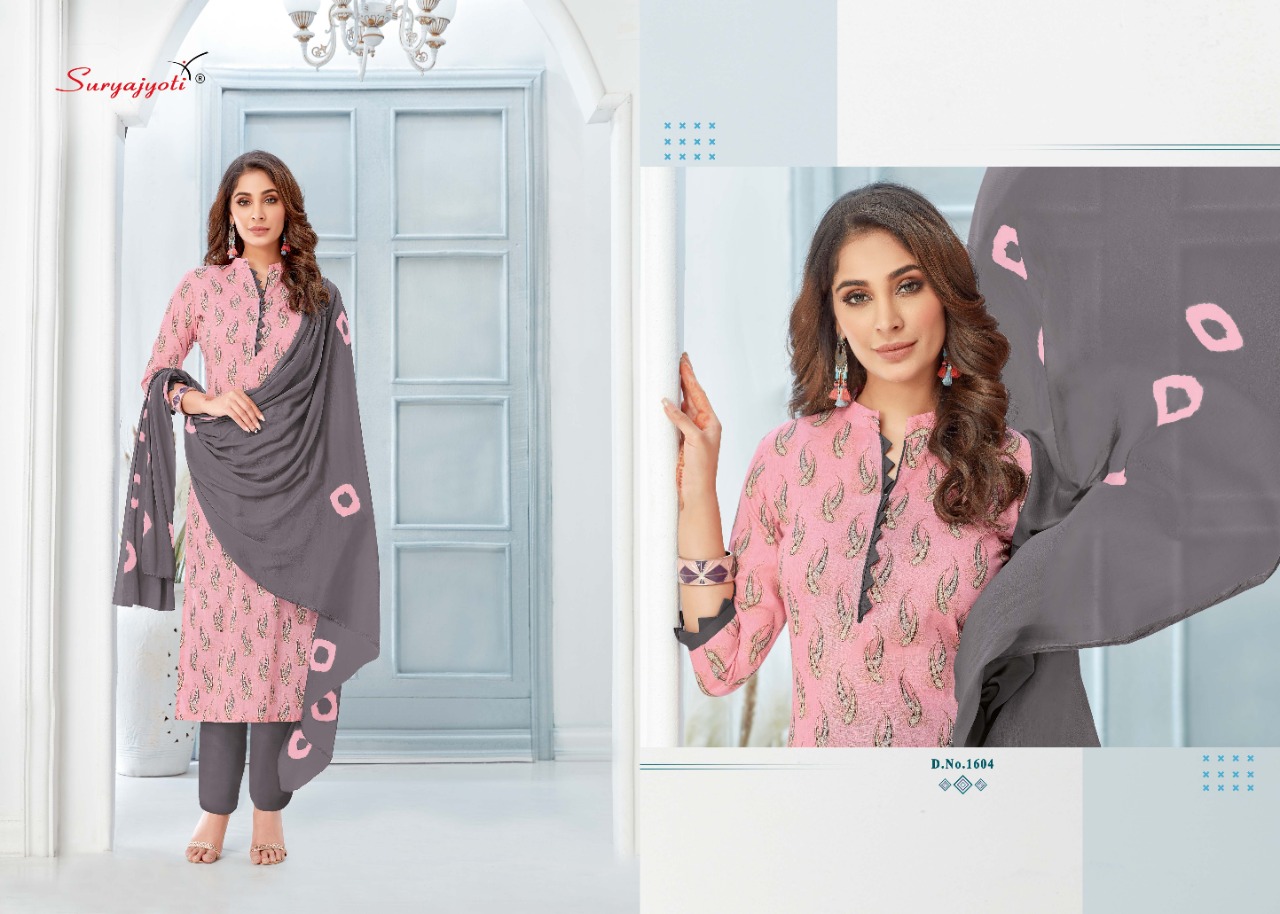 | DETAILS | Dear Customers, Welcome to *SURYAJYOTI* LAUNCHING OF *SURYAJYOTI* ‘S new catalog ?Catalogue:- *SUHANA VOL-16* ?cloth :- *TOP CAMBRIC BOTTOM COTTON* DUPATTA- *NAZMIN CHIFFON* Cut- *2.5-2.25-2.25* Rate- *485* |