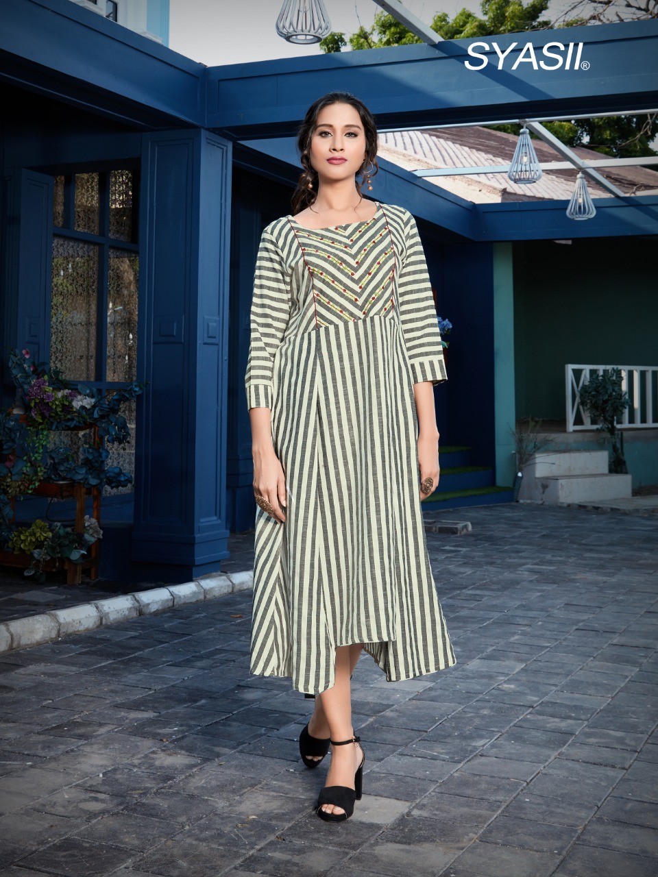 | DETAILS | Catalogue:- SAMAIRA ?KURTI : – Fancy Hand Work A-Line Kurti ?Fabric:-Fancy Cotton Wave ⚜size: -M(38),L(40),XL(42),XXL(44) ?Design:- 6 Pcs ?price: – 455/- +5% GST |