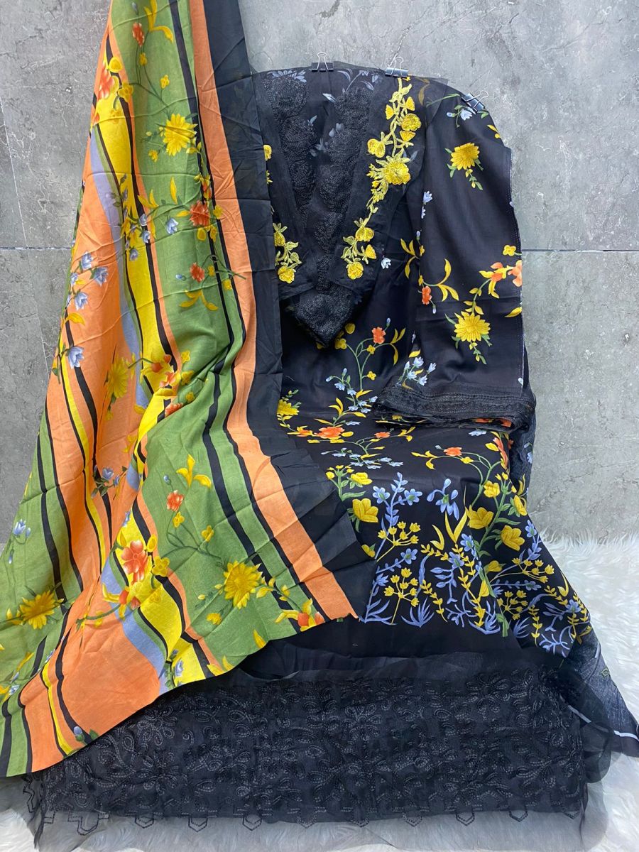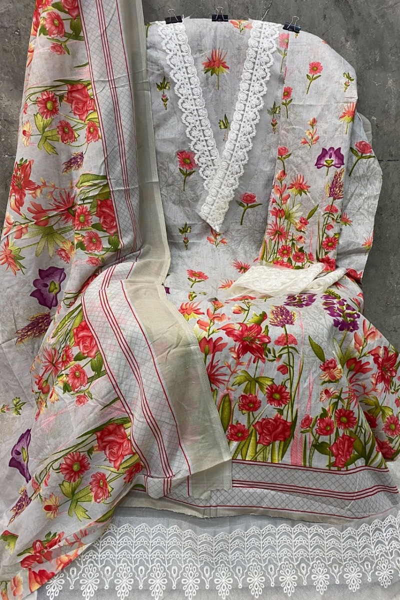 | FABRIC DETAILS | Top : Lawn cottonBottom : Heavy cottonDupatta : Cotton print Chiffon print |