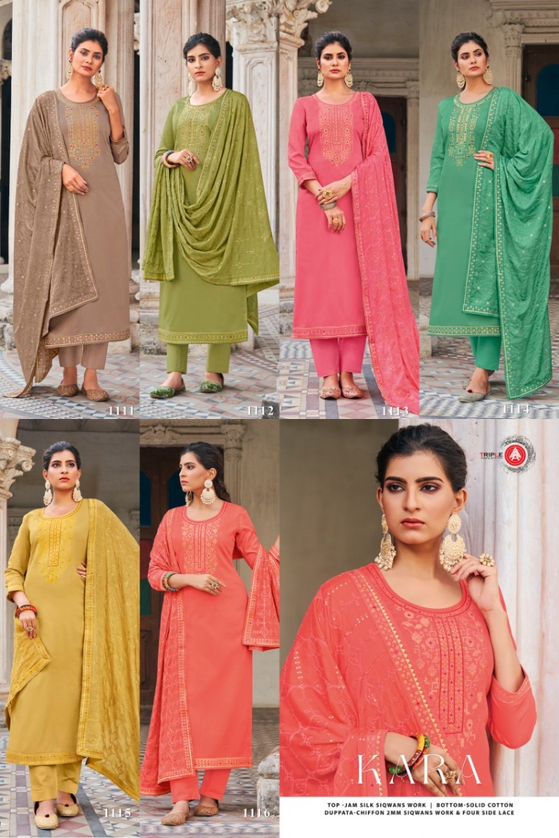 | DETAILS | *Fabric Details Top:- jaam silk 2mm seq work Bottom:- cotton solid Dupatta:- chiffon 2mm seq work with four side less work Total Design:- 6 |