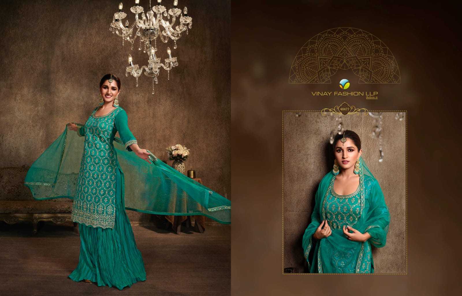 | DETAILS | * **FABRIC DETAILS* *EMBROIDERED SILK GEORGETTE KURTA WITH CRUSHED SILK GEORGETTE SHARARA AND EMBROIDERED NET DUPATTA**SIZE : M-L-XL-2XL-3XL* |