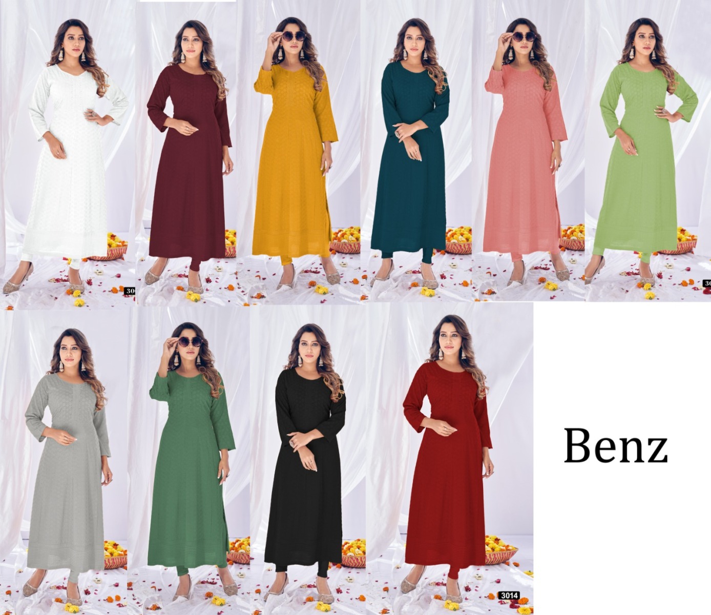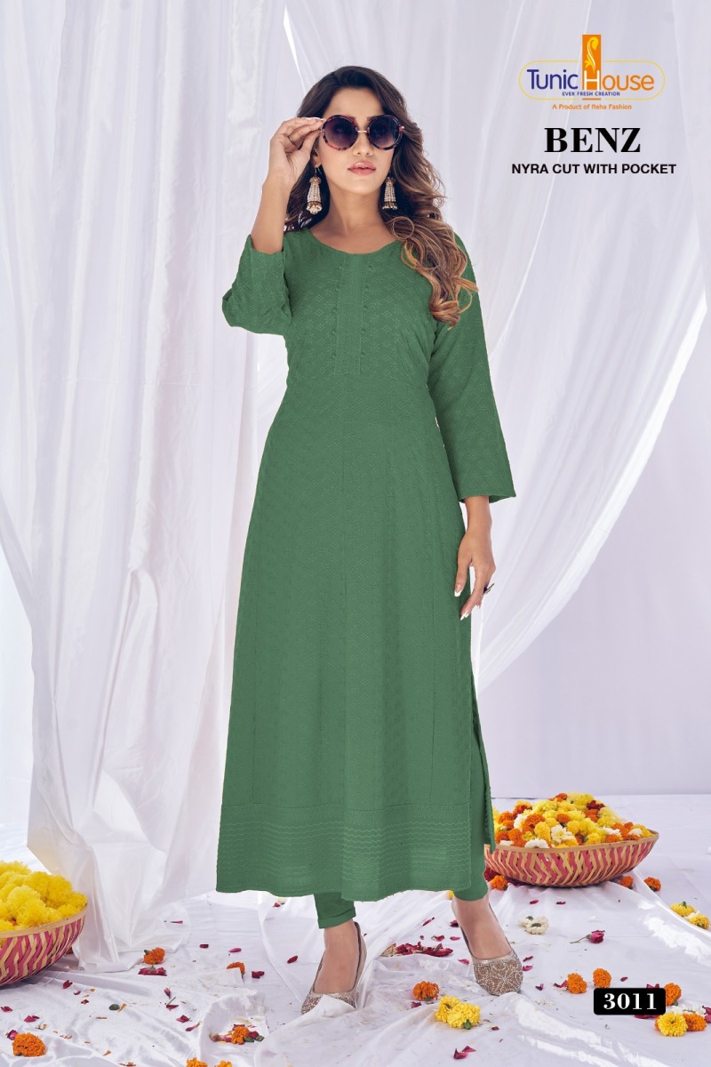 TUNIC HOUSE BENZ CHIKANKARI NYRA CUT LONG KURTIS COMBO SET