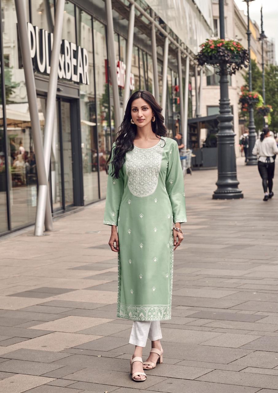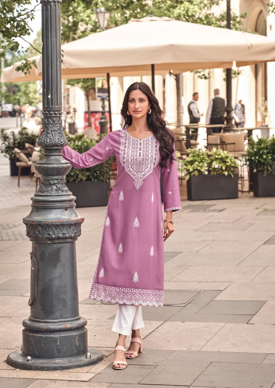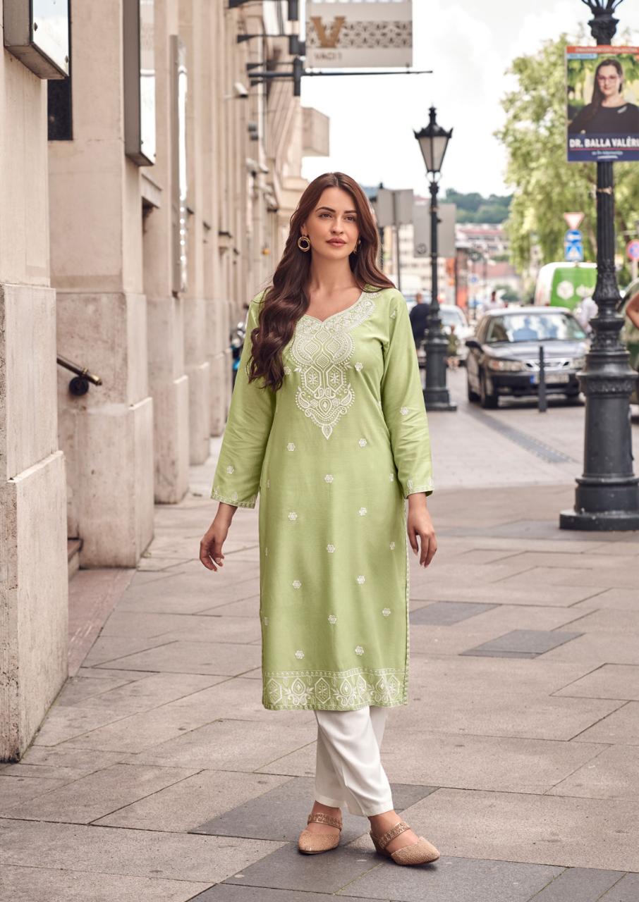 | DETAILS | *Top:- Pure REYON VISCOS with lakhnawi stitch* *Pant:- Pure Viscos Reyon* Total Design:- 6 Pcs *Rate:- 495/-(only kurti)* |