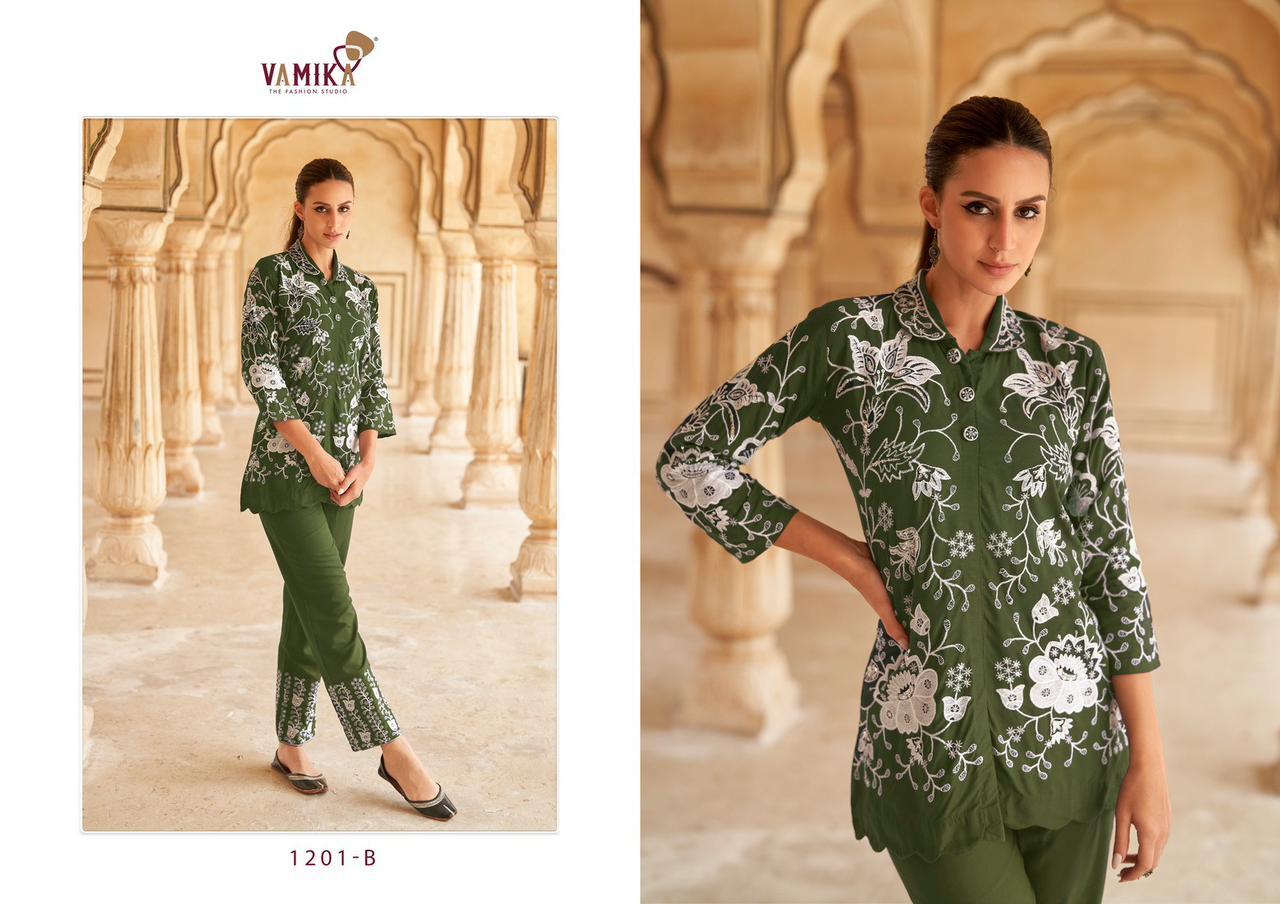 | DETAILS | **Fabrics Details:-* Top:- Hevy REYON With squeans Work PANT :- Hevy REYON*Size- M-38, L-40, XL-42, XXL-44, 3xl-46*Des.Total:- 5 Pcs |