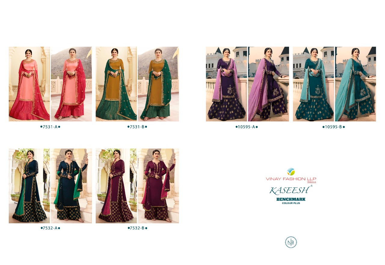 | DETAILS | MENTIONED AVG PRICE OFF ALL THE CATALOGS OF VINAY FASHION. ONLY FUL SET ( AVG PRICE * NO OF PCS + 5% GST ) *KASHEESH AMBITION 3 – 1780* *KASHEESH SHINING STAR – 1490* *KASHEESH NARGIS – 1910* *KASEESH DULHAN – 1615* *KASEESH BANARAS 4 – 1335* |