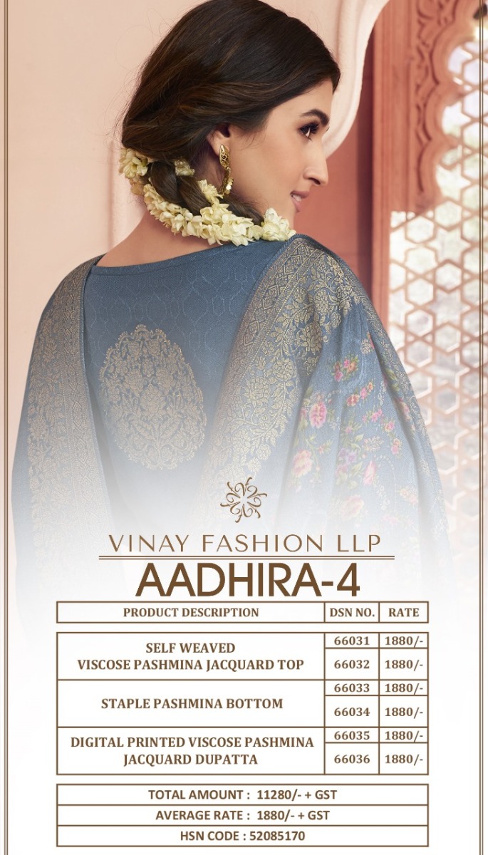 | DETAILS | *Fabrics details***DRESS MATERIALS* *SELF WEAVED VISCOSE PASHMINA JACQUARD TOP WITH DIGITAL PRINTED VISCOSE JACQUARD PASHMINA DUPATTA* |
