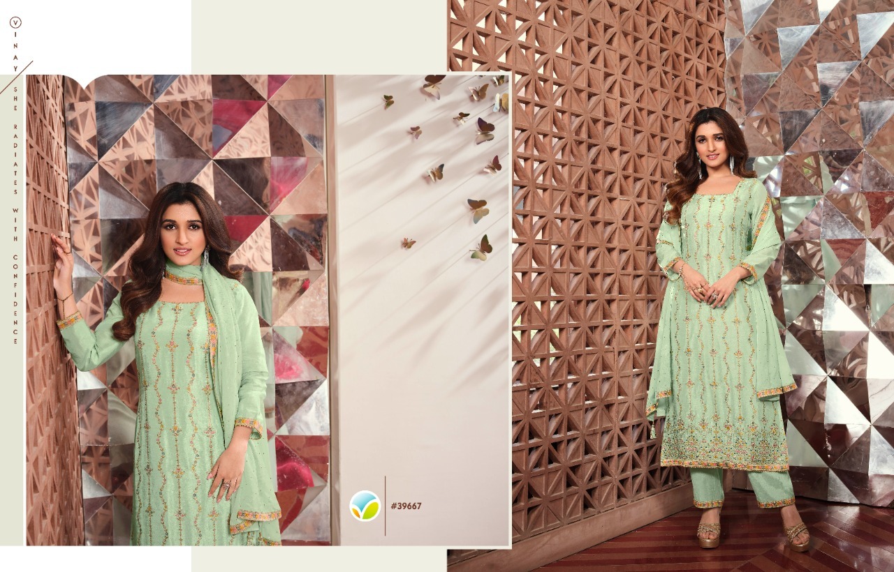 | DETAILS | **FABRIC DETAILS -* *TOP : PURE VISCOSE DOLA JACQUARD WITH MEENA WORK* *BOTTOM : SANTOON* *DUPATTA : CHINON DUPATTA WITH DIAMOND WOTK & 4 SIDE JACQUARD MEENA BORDER**SIZE : M TO 3XL* |
