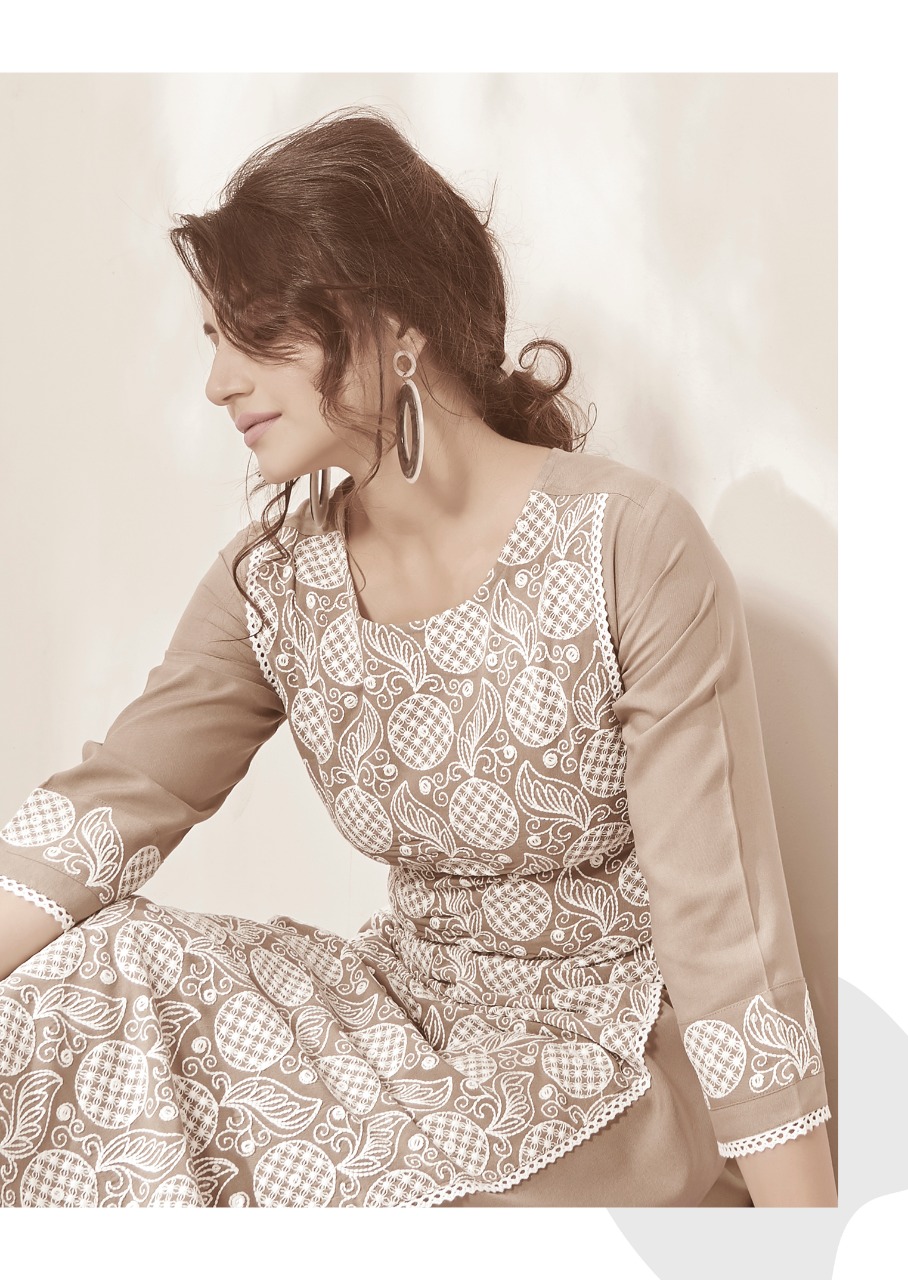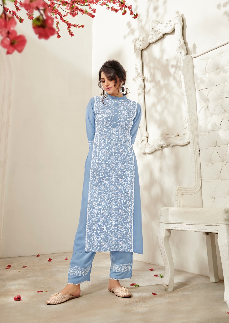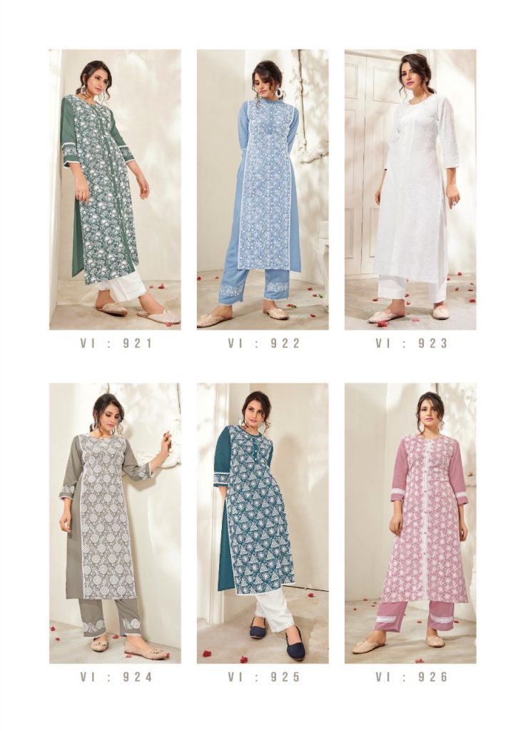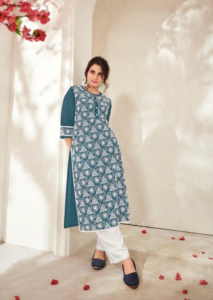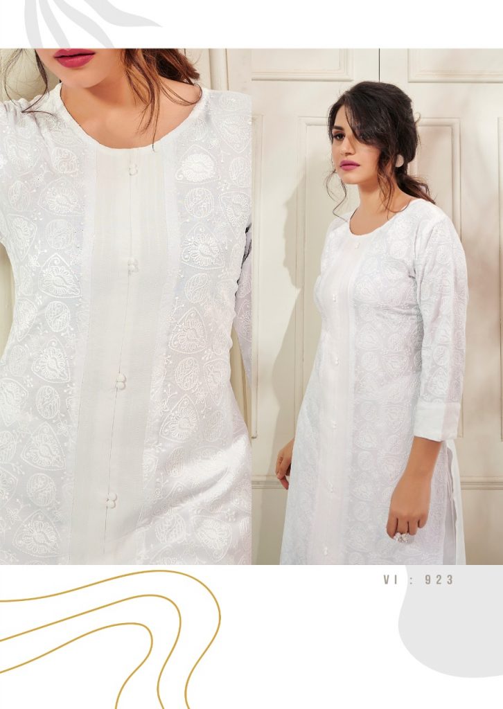 | DETAILS | *”LUCKNOWI 3 BY VINK”* *KURTAS WITH PANTS* FABRIC – PURE RAYON WITH *SCHIFFLI SEQUINS WORK* *(BOUTIQUE STYLE)* PANTS WITH WORK !!! *RATE – RS. 950/- * SIZES – M(38), L(40), XL(42), 2XL(44). KURTI LENGTH – 46″+ (WITH PANTS) |