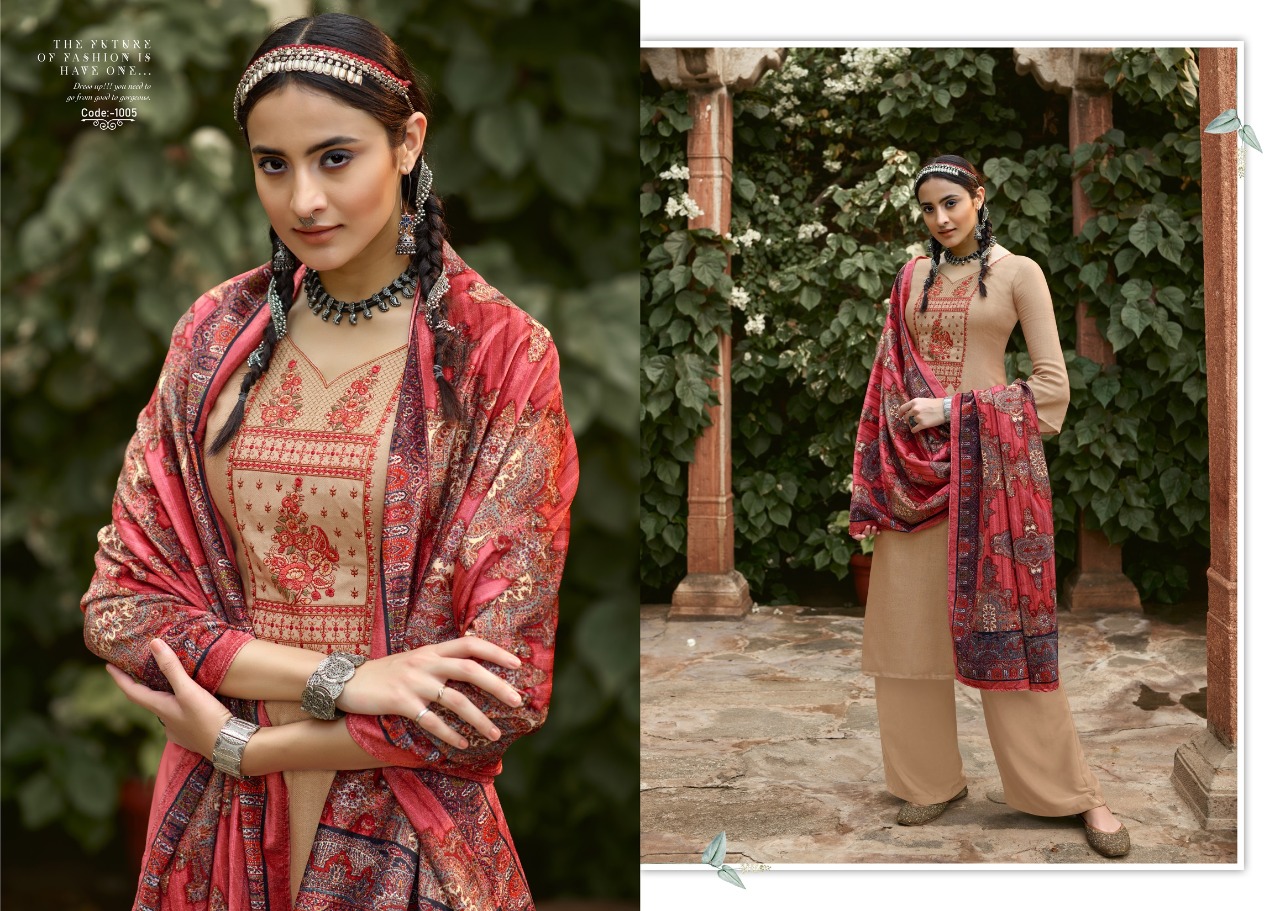 | DETAILS | Top :- Heavy Euro wool Negative Print with Neck Embroidery. ? Bottom : Heavy Euro wool bottom ??Dup : 9000 Velvet Digital Printed Dupatta |