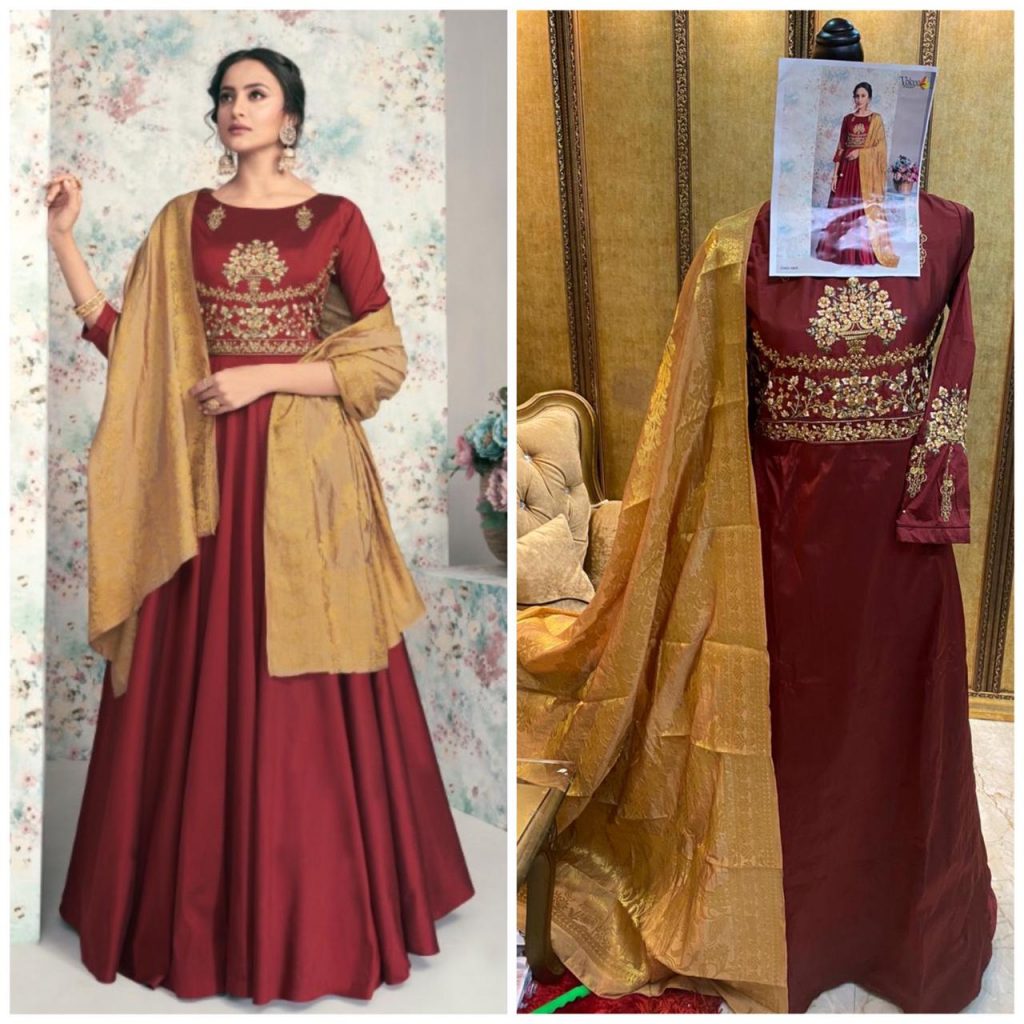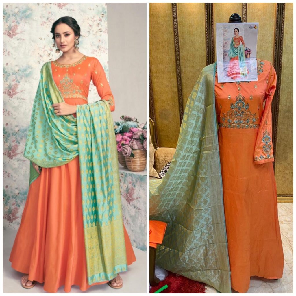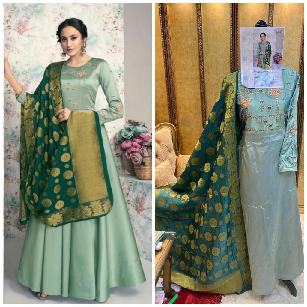 | DETAILS | Name – *Poshak vol.2* ?Fabric details – ?Top – heavy sartin tafeta with heavy work with heavy FT inner ?Duppta:-Banarasi box duppta ⭕ bottom:- heavy Santton ?Size:-M,L,xl,2xl,3xl |