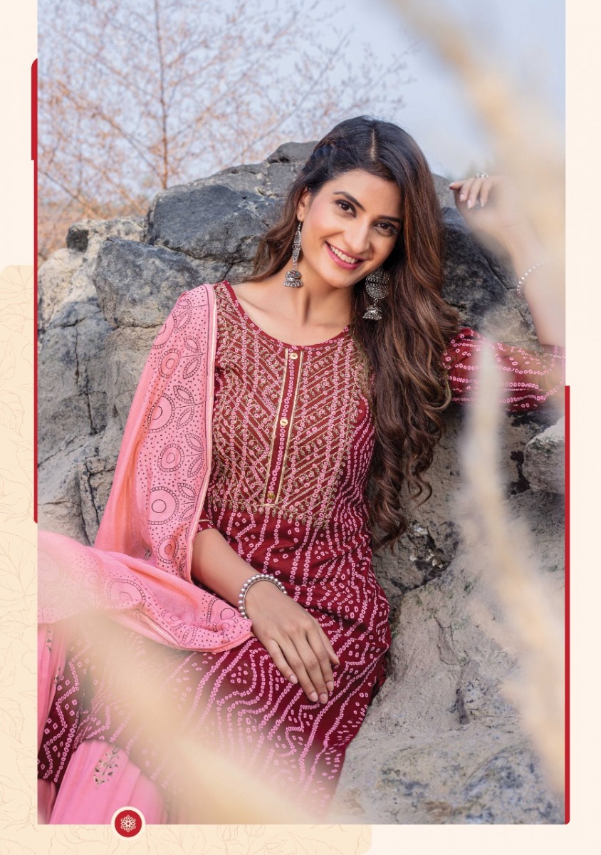 | DETAILS | *Fabric Details :Designs : 06Sizes : M TO 3XLTop - Finest Quality of PURE Bandhani RAYON with heavy WorkWith Sharara ( Finest Quality ) Heavy Fancy Printed Dupatta |