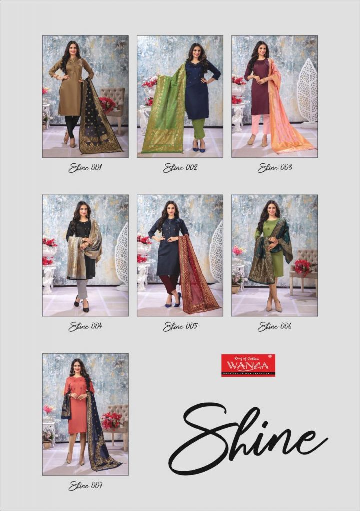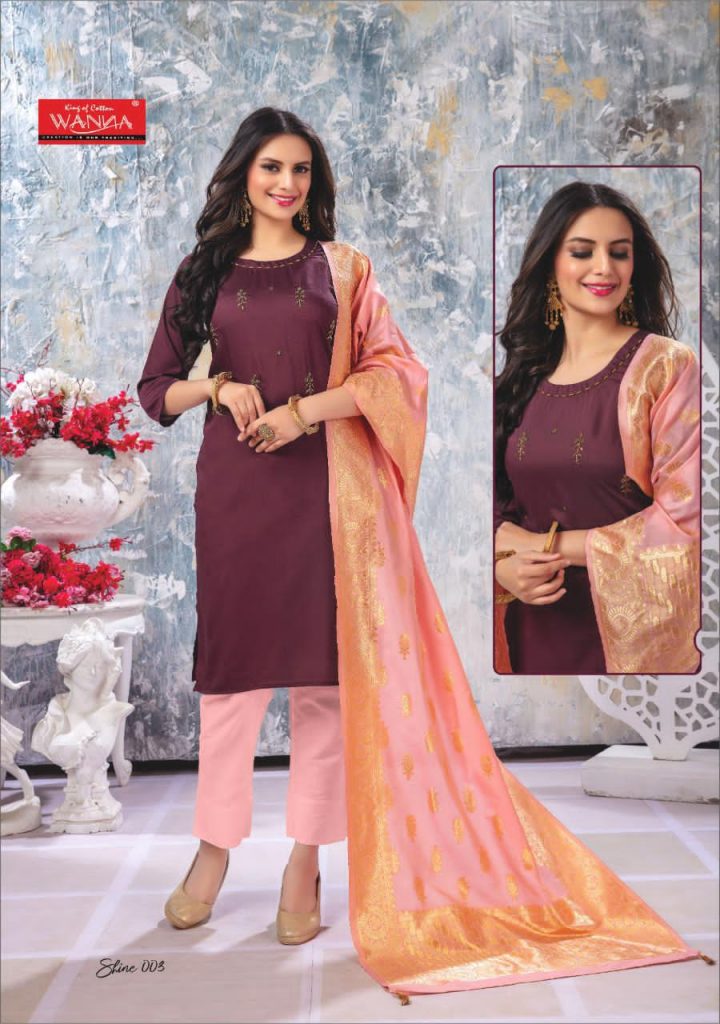 | DETAILS | Launch New Kurti with Banarasi Dupatta Catalogue? ?Catalogue name :” Shine !??” ?Designs : 7 Size – L,XL, XXL Rate – 645+Gst |