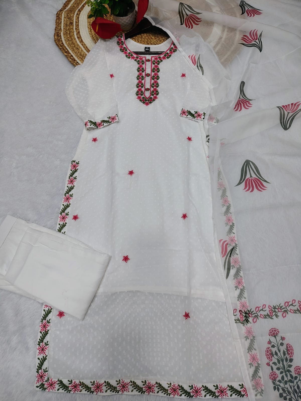 Including: Nack with embroidery And heavy Cotton Dupatta