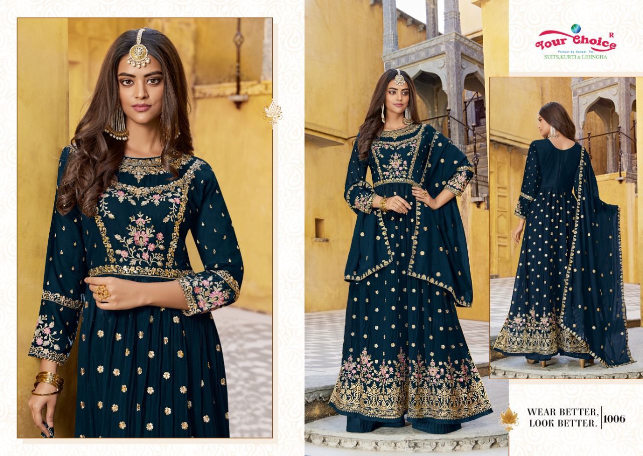 | DETAILS | **Fabrics-Blooming georgett Blooming georgett Blooming georgette Inner dull santoonDes———6 pcs |
